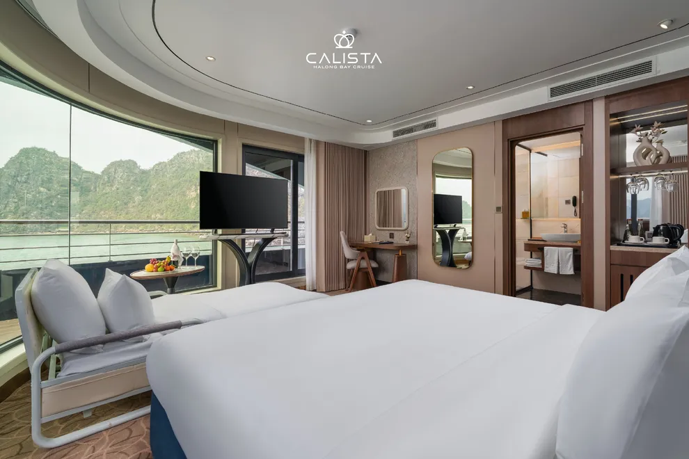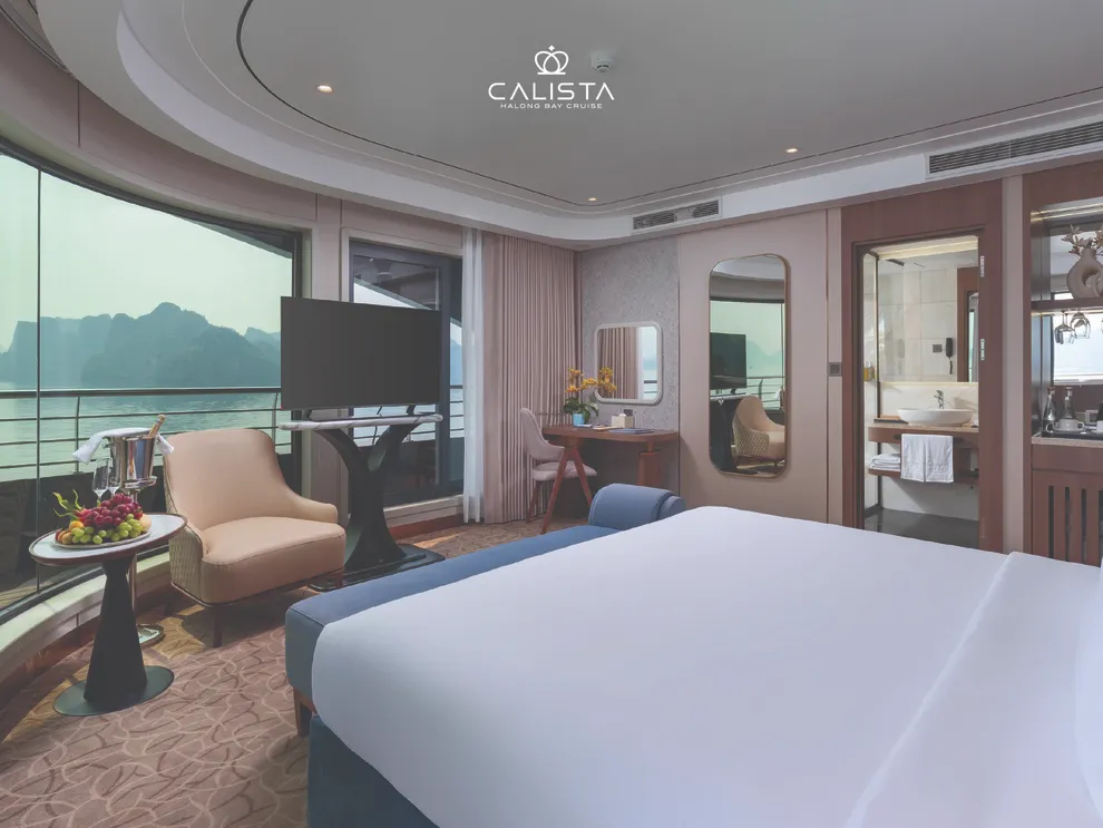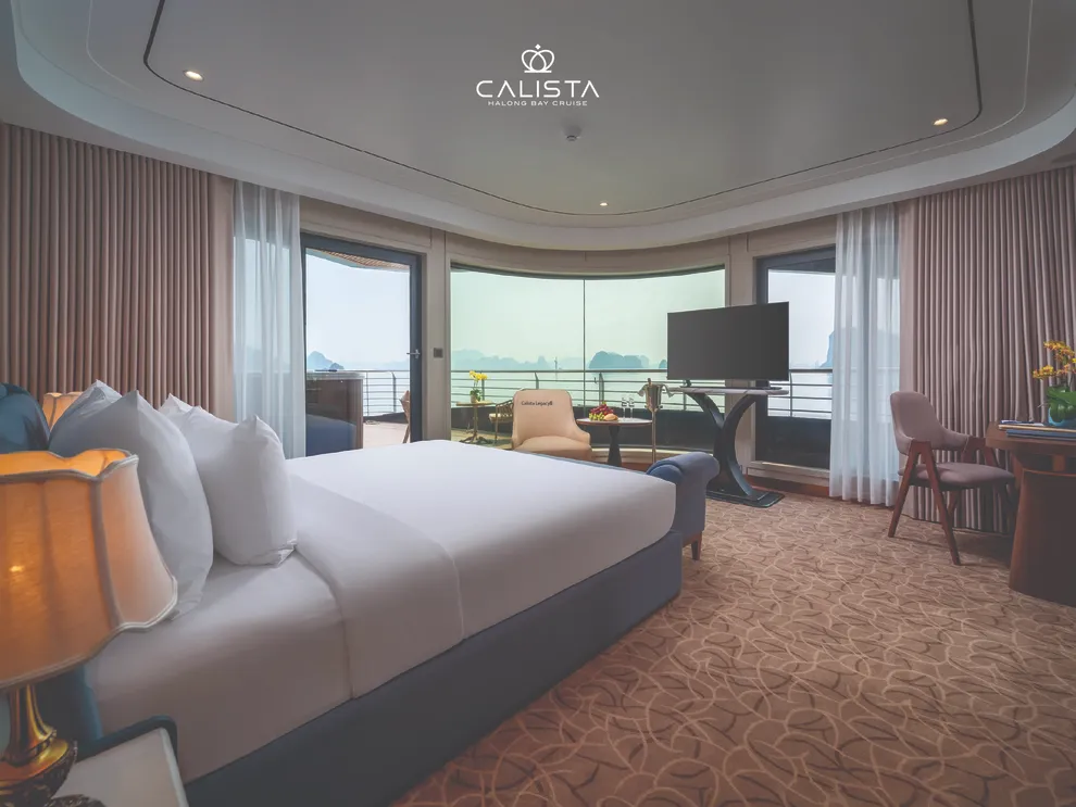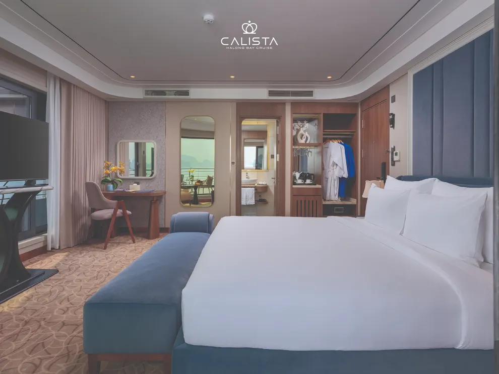 Được ví như một “khách sạn nổi”, điểm đắt giá nhất trong thiết kế của Calista là sự hào phóng về không gian. 100% phòng nghỉ đều sở hữu ban công riêng và bồn tắm hướng vịnh, cùng hệ thống điều khiển thông minh hiện đại. Du khách có thể lựa chọn giữa các hạng phòng đa dạng tùy theo nhu cầu trải nghiệm.