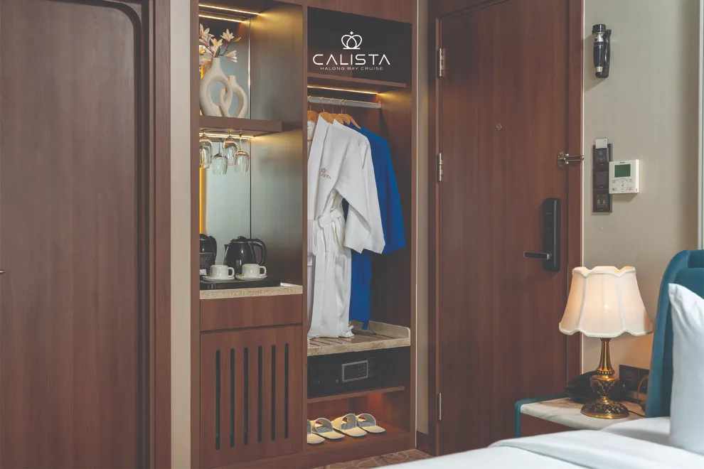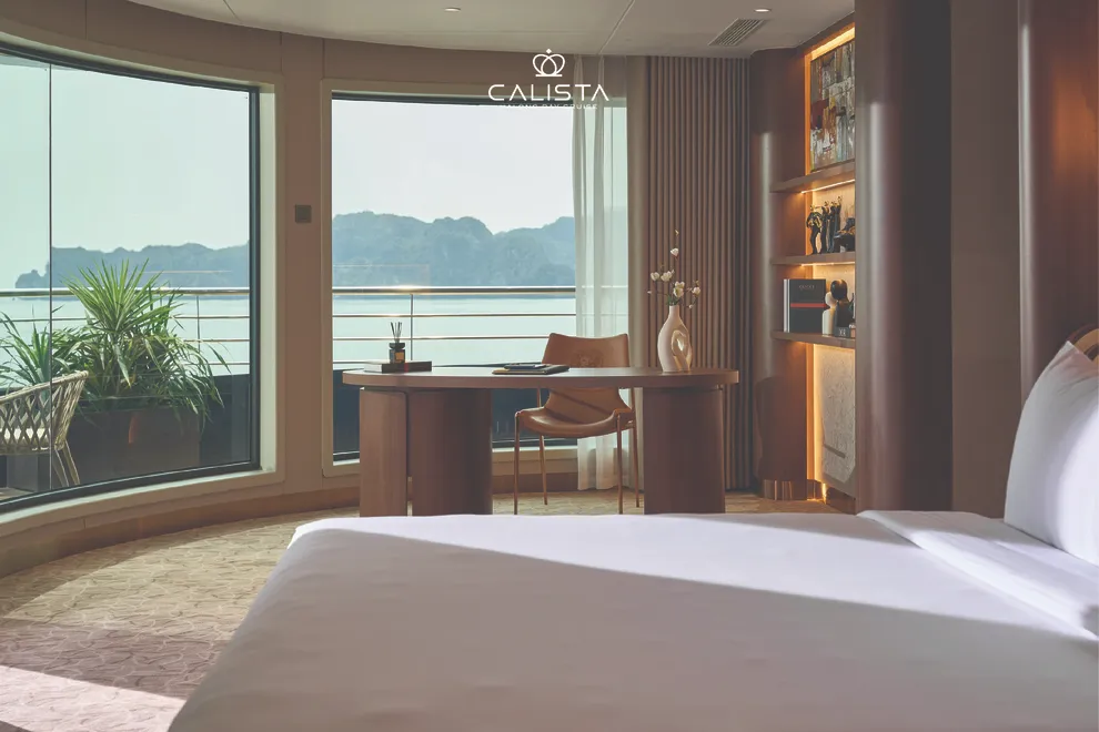 Nằm tại tầng 1, hạng phòng Calista Ocean (30m²) và Calista Bay (32m²) mang đến trải nghiệm “chạm” vào biển cả, nơi bạn có thể nghe rõ tiếng sóng vỗ và tận hưởng sự yên tĩnh, ấm cúng. Di chuyển lên tầng 2, 3 và 4 là hạng phòng chủ đạo Calista Legacy (33m²). Đây là hạng phòng được săn đón nhất nhờ vị trí tầng cao mở ra tầm nhìn Panorama ôm trọn khung cảnh hàng nghìn đảo đá vôi.