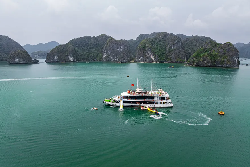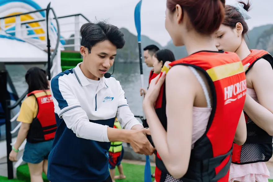 Đặc biệt, sự an toàn của mỗi hành khách luôn được ưu tiên hàng đầu với hệ thống trang thiết bị đạt chuẩn vận hành quốc tế. Du thuyền được trang bị đầy đủ áo phao, thiết bị phòng cháy chữa cháy, nghiệp vụ y tế và dụng cụ sơ cứu luôn sẵn sàng trong mọi tình huống. Quy định mặc áo phao được thực hiện nghiêm ngặt khi du khách tham gia chèo thuyền Kayak hay bơi lội để đảm bảo một chuyến đi trọn vẹn và an tâm nhất. Với giấy phép lữ hành quốc tế uy tín, chúng tôi tự tin mang đến một môi trường du lịch an toàn, văn minh và chuyên nghiệp.