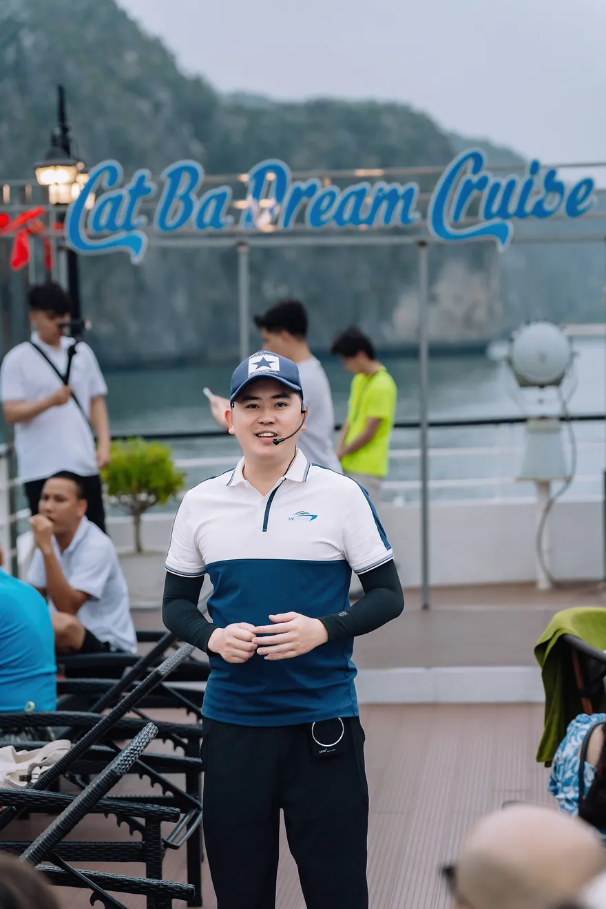 Đồng hành cùng bạn trong suốt chuyến đi là đội ngũ hướng dẫn viên chuyên nghiệp, tận tâm và am hiểu sâu sắc về văn hóa bản địa. Với sự nhiệt huyết, họ không chỉ hỗ trợ du khách trong các hoạt động trải nghiệm mà còn kể những câu chuyện thú vị về lịch sử làng chài Cái Bèo hay sự hình thành của những đảo đá vôi kỳ vĩ. Chính sự chăm chút trong từng khâu phục vụ đã giúp Cat Ba Dream Cruise khẳng định vị thế của một du thuyền 5 sao đẳng cấp quốc tế.