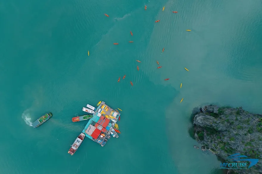 Khách lên du thuyền thưởng thức trà chào mừng và tham quan Làng chài Cái Bèo (có tuổi đời hơn 7.000 năm). Sau đó, tàu tiếp tục di chuyển qua Hòn Cụ Rùa và Hang Tai Kéo.