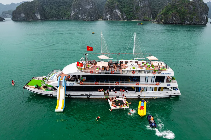 Vịnh Lan Hạ thường được ví von là một “thiên đường bị lãng quên” với vẻ đẹp hoang sơ và kiêu hãnh, là điểm đến lý tưởng cho những ai tìm kiếm sự tĩnh lặng giữa các đảo đá vôi và làn nước xanh lục bảo. Trong bối cảnh đó, Cat Ba Dream Cruise xuất hiện như một biểu tượng của sự giao thoa hài hòa giữa giá trị di sản bản địa và các tiêu chuẩn nghỉ dưỡng thượng lưu. Đây không chỉ đơn thuần là một phương tiện vận chuyển du khách tham quan, mà còn là một không gian sống đẳng cấp được thiết kế để đáp ứng nhu cầu khắt khe về sự tiện nghi giữa lòng kỳ quan thiên nhiên.