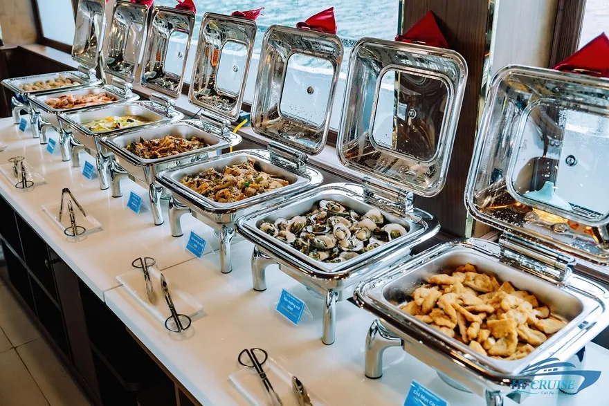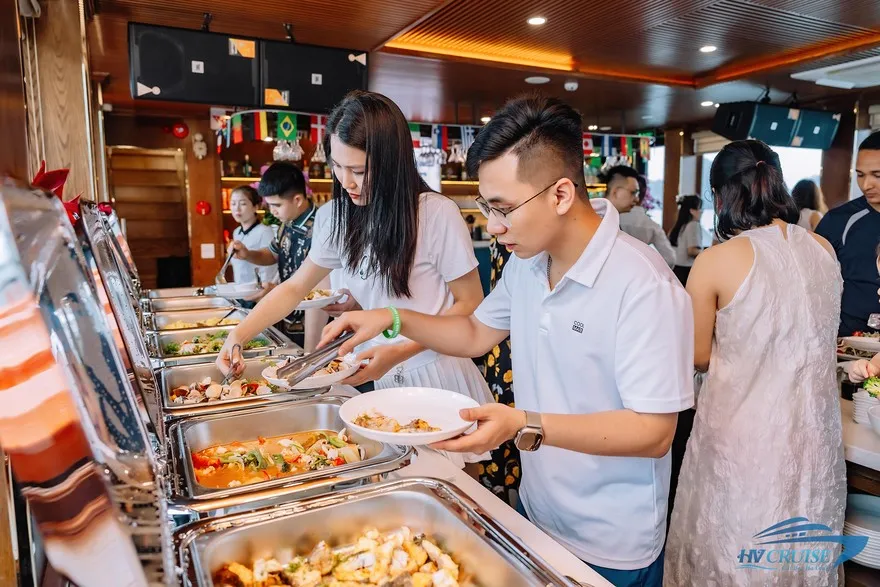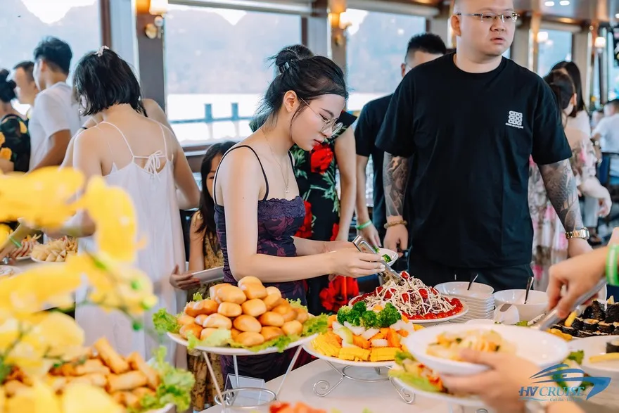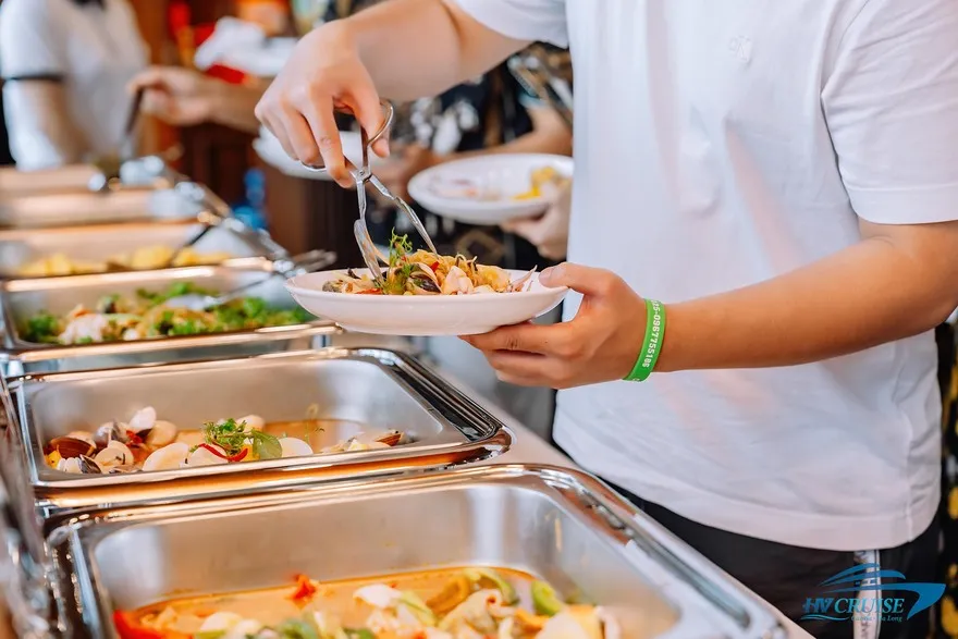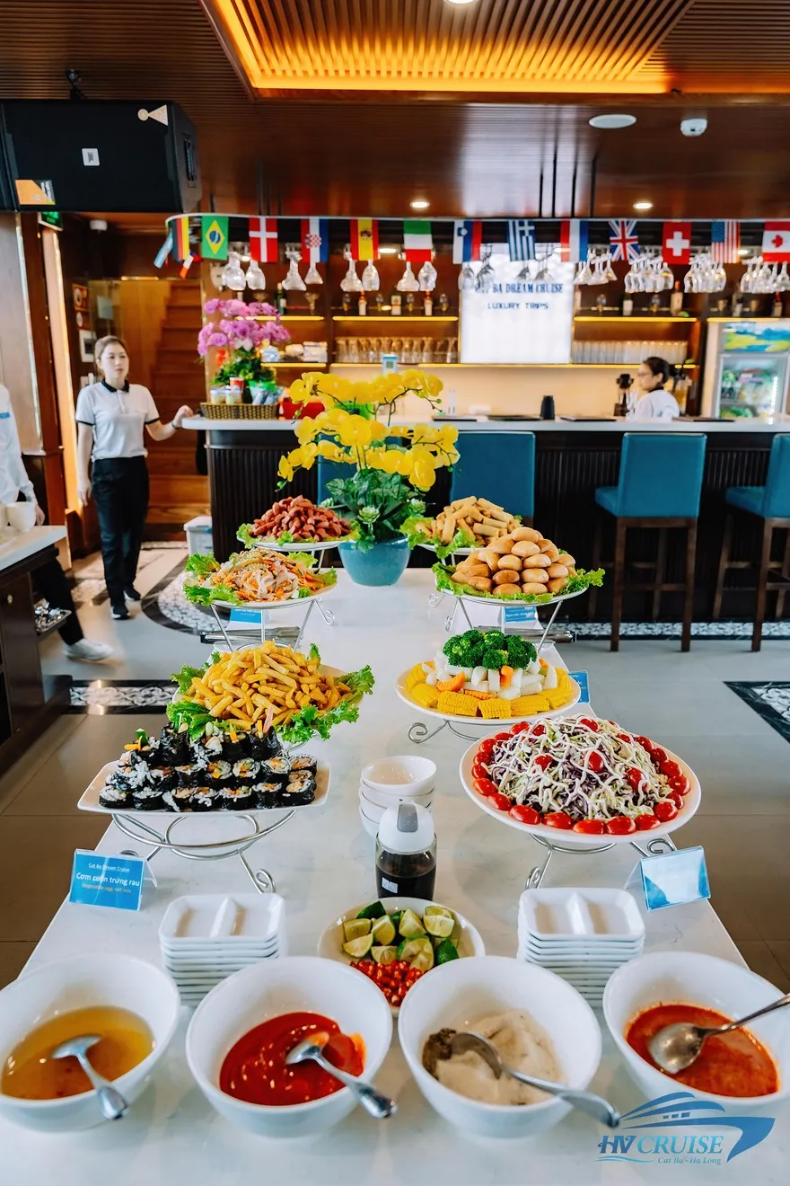 Du khách có thể thuocs thức Buffet trên du thuyền Cát Bà Dream Cruise