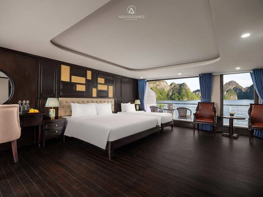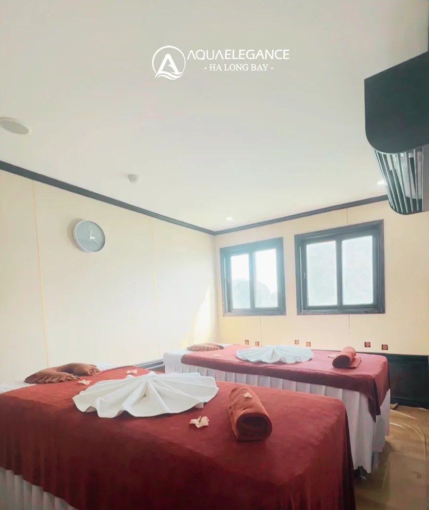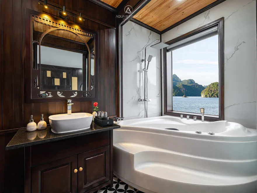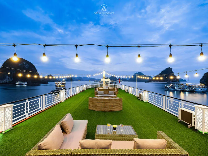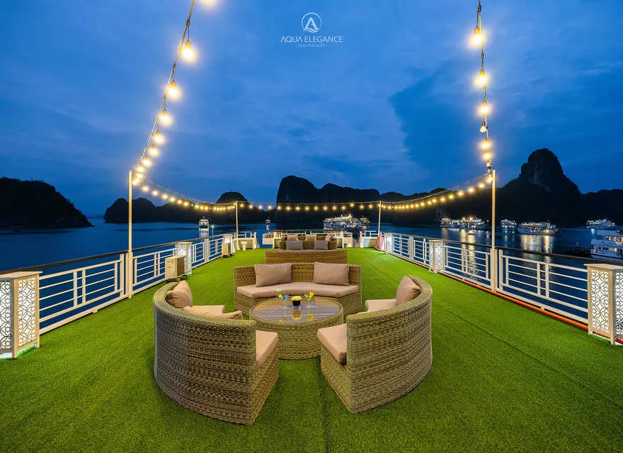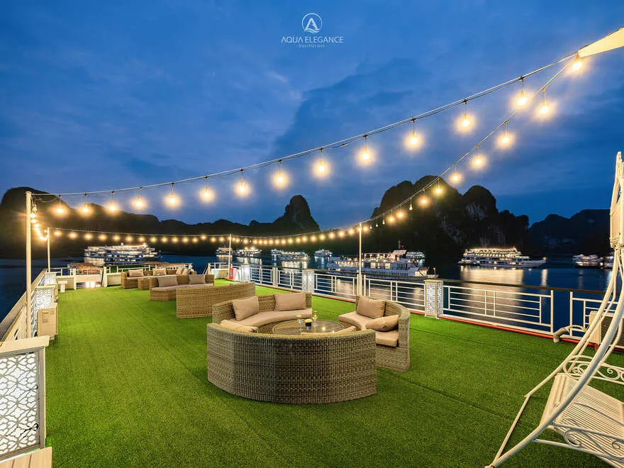 Cuối cùng, sự sang trọng của Aqua Elegance luôn song hành cùng trách nhiệm với môi trường và cam kết an toàn. Du thuyền tích cực tham gia chương trình “Vịnh Hạ Long không rác thải nhựa”, thay thế chai nhựa bằng bình thủy tinh và vận hành hệ thống xử lý nước thải tiên tiến. Mọi hải trình đều tuân thủ nghiêm ngặt các quy định quốc tế như ISM Code và SOLAS, với đầy đủ thiết bị cứu hộ và cảm biến khói hiện đại trong từng cabin. Aqua Elegance không chỉ là một chuyến đi, mà là một không gian nghỉ dưỡng văn minh, nơi bạn có thể gác lại mọi âu lo để thực sự tận hưởng một kỳ nghỉ boutique đúng nghĩa giữa lòng di sản thế giới.
