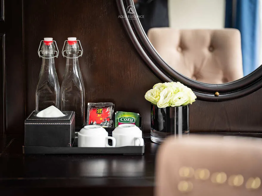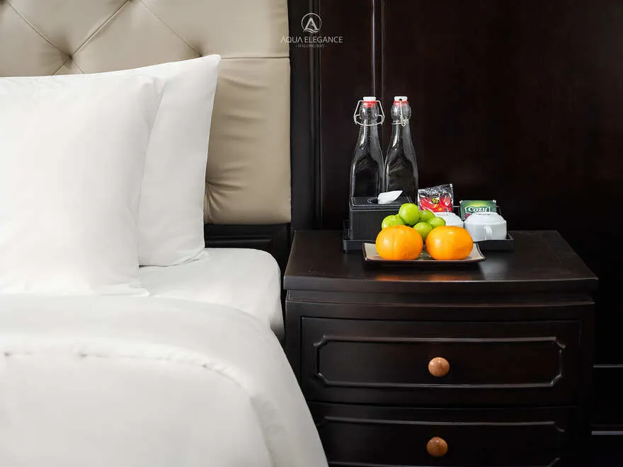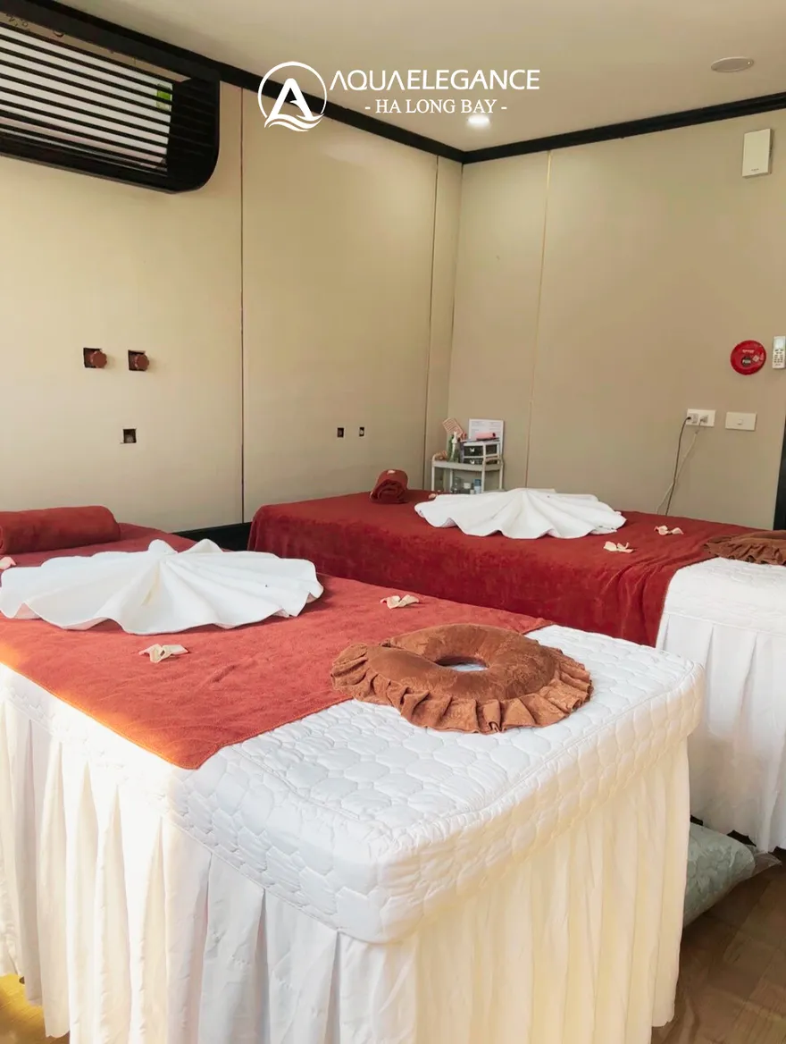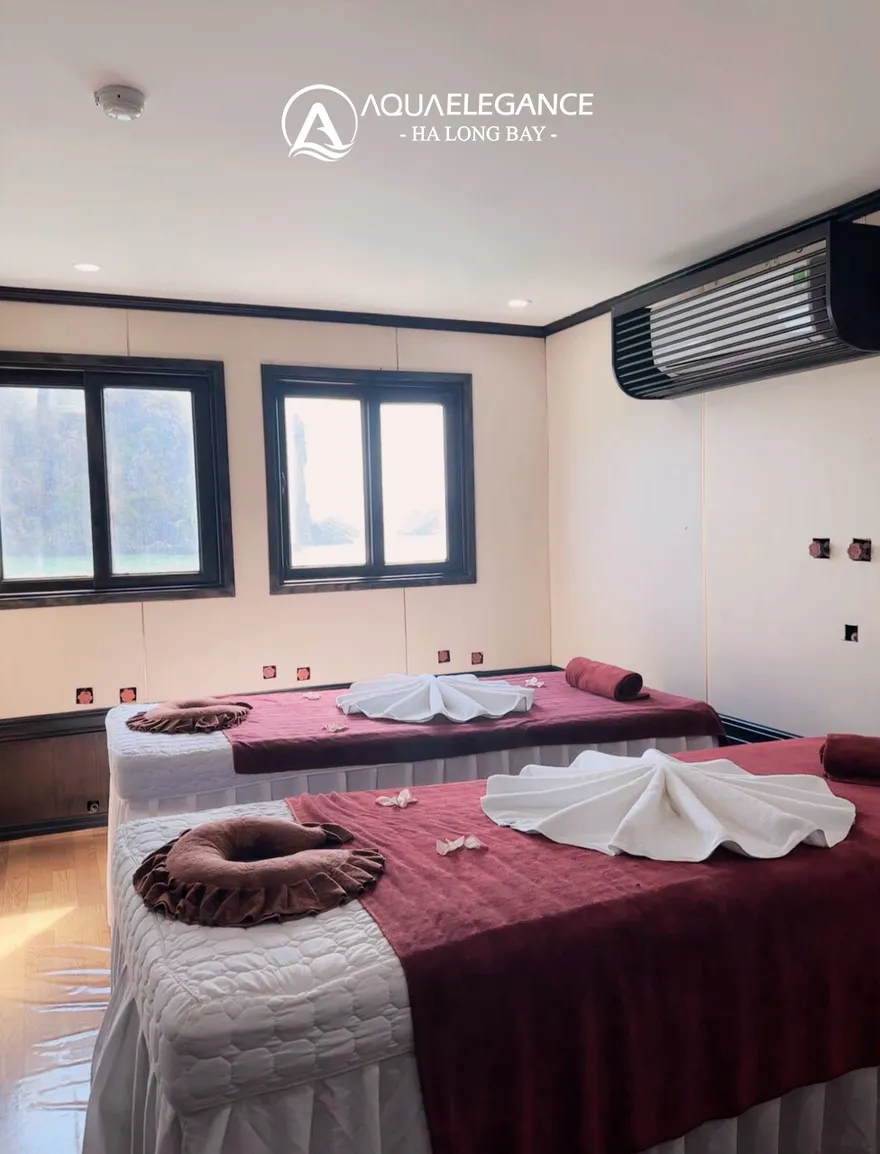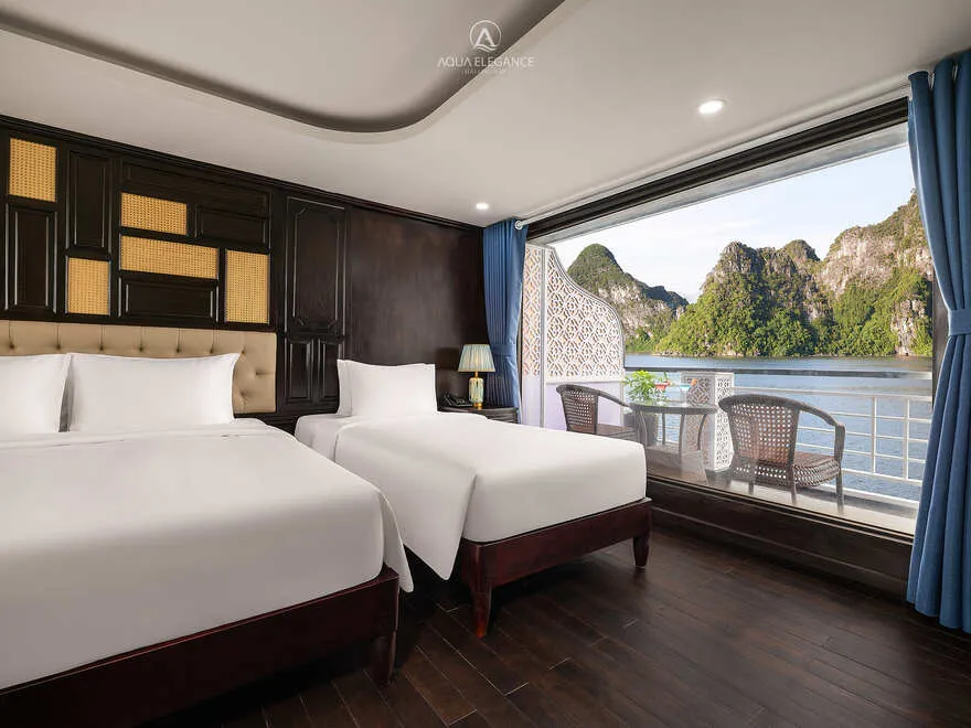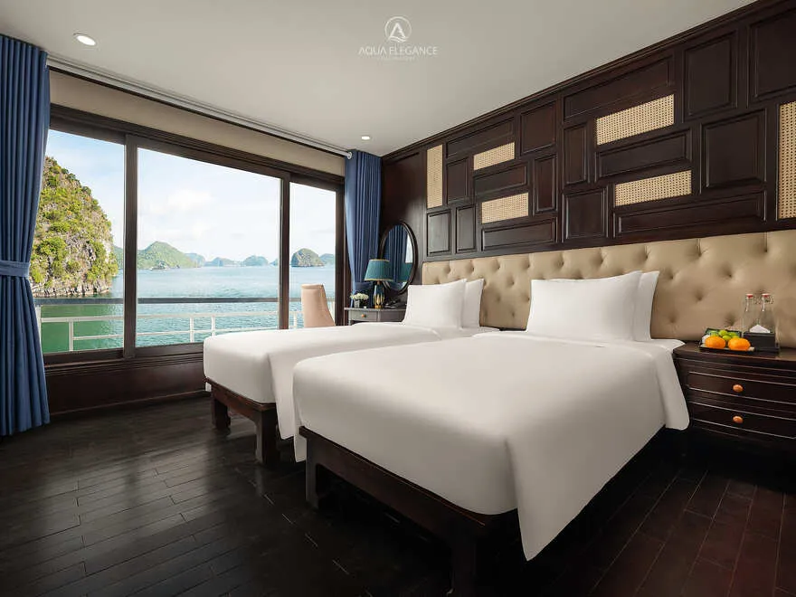 Cuối cùng, sự sang trọng của Aqua Elegance luôn song hành cùng trách nhiệm với môi trường và cam kết an toàn. Du thuyền tích cực tham gia chương trình “Vịnh Hạ Long không rác thải nhựa”, thay thế chai nhựa bằng bình thủy tinh và vận hành hệ thống xử lý nước thải tiên tiến. Mọi hải trình đều tuân thủ nghiêm ngặt các quy định quốc tế như ISM Code và SOLAS, với đầy đủ thiết bị cứu hộ và cảm biến khói hiện đại trong từng cabin. Aqua Elegance không chỉ là một chuyến đi, mà là một không gian nghỉ dưỡng văn minh, nơi bạn có thể gác lại mọi âu lo để thực sự tận hưởng một kỳ nghỉ boutique đúng nghĩa giữa lòng di sản thế giới.