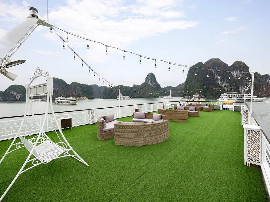 Hải trình của tàu được thiết kế để bạn thực sự kết nối với di sản qua các lựa chọn 2 ngày 1 đêm hoặc 3 ngày 2 đêm. Bạn sẽ được chiêm ngưỡng vẻ đẹp kỳ vĩ của Hang Sửng Sốt, chinh phục đảo Titop để ngắm nhìn toàn cảnh vịnh từ trên cao, hay len lỏi qua Hang Luồn bằng thuyền nan và kayak. Với lịch trình dài ngày hơn, bạn còn có cơ hội khám phá sự hoang sơ của Vịnh Lan Hạ, bãi biển Ba Trái Đào và tham quan trang trại ngọc trai độc đáo. Các hoạt động như tập Taichi đón bình minh, lớp học nấu ăn truyền thống, tiệc hoàng hôn “Happy Hour” hay câu mực đêm sẽ khiến mỗi khoảnh khắc trên tàu đều tràn đầy cảm hứng.