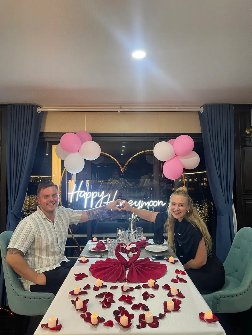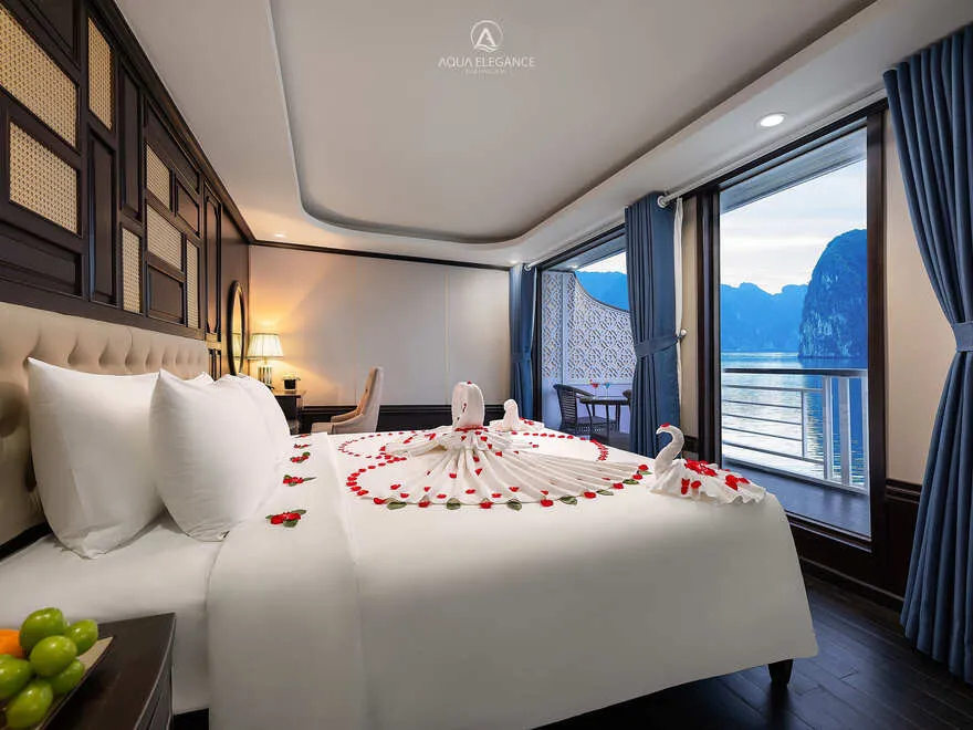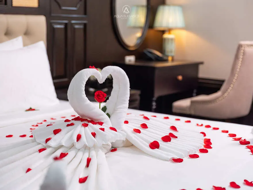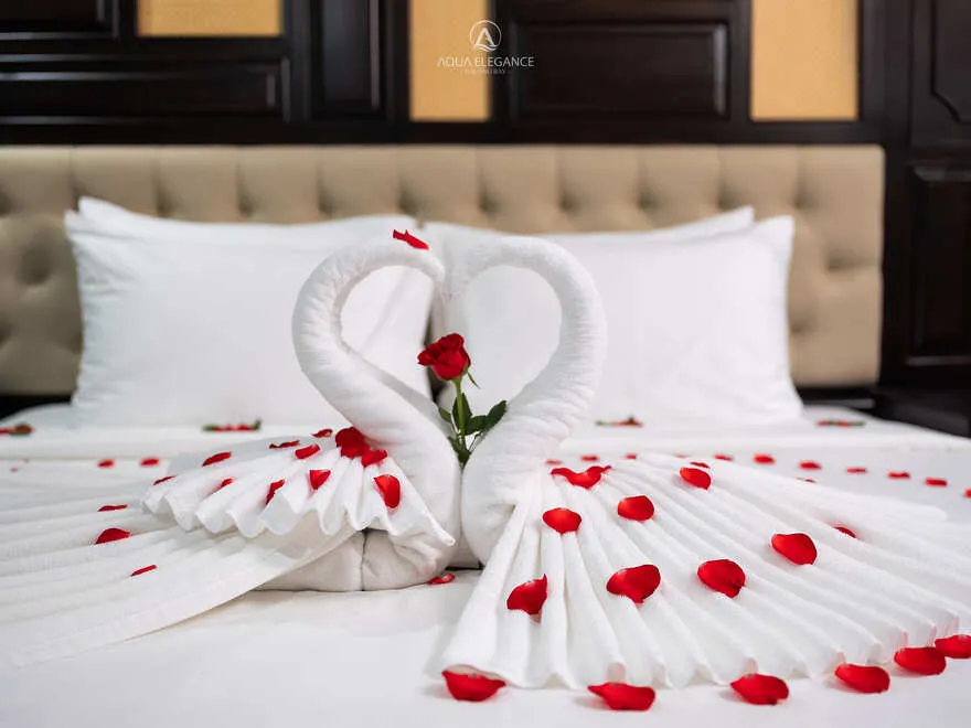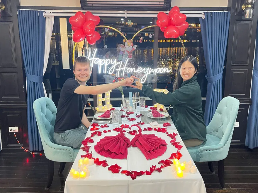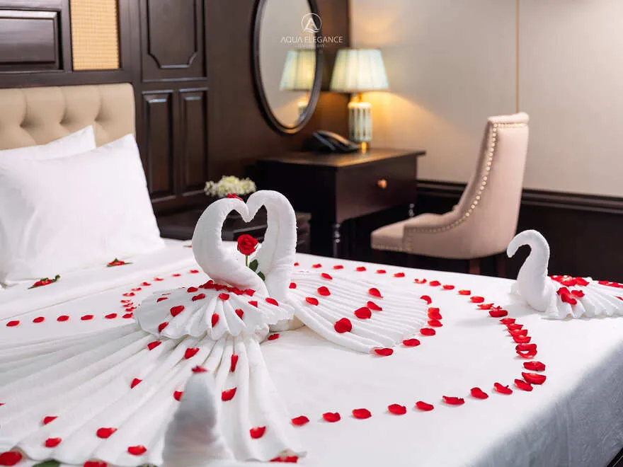 Set-up lãng mạn: Đối với các cặp đôi đi hưởng tuần trăng mật hoặc kỷ niệm ngày cưới, du thuyền hỗ trợ trang trí phòng miễn phí để tạo bất ngờ cho "nửa kia".