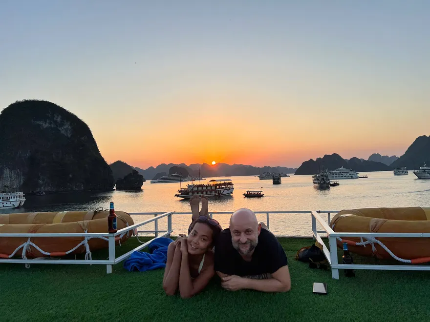 Trở lại tàu, tự do nghỉ ngơi ngắm hoàng hôn.