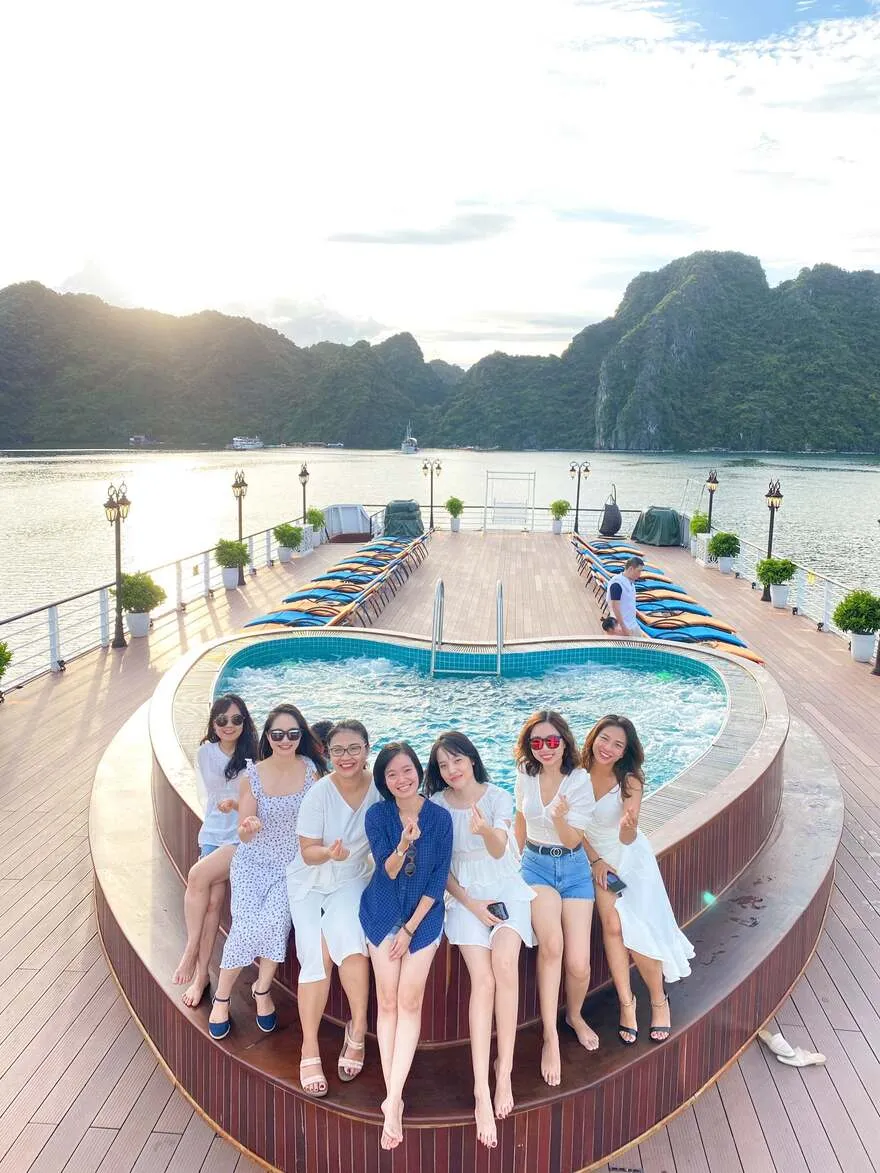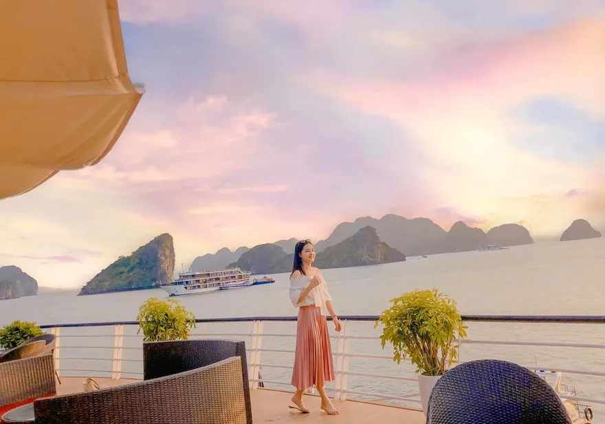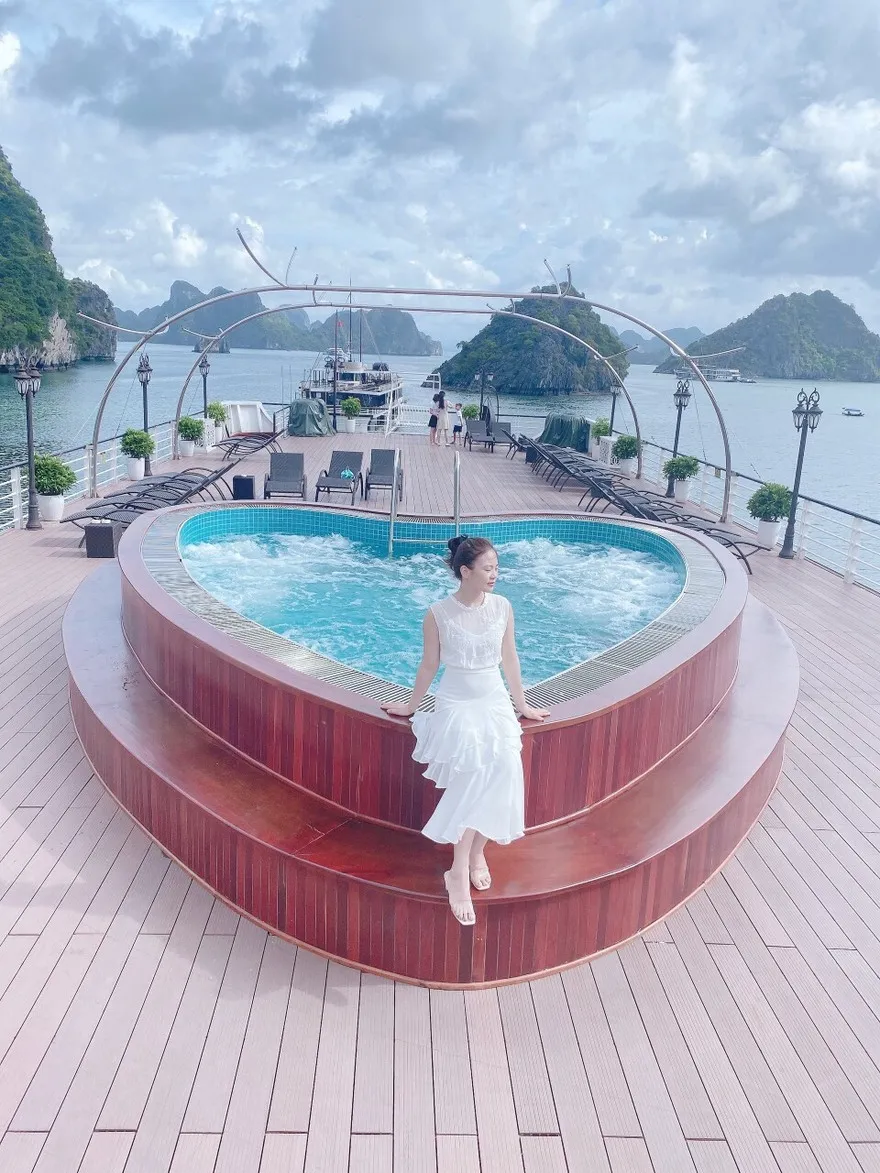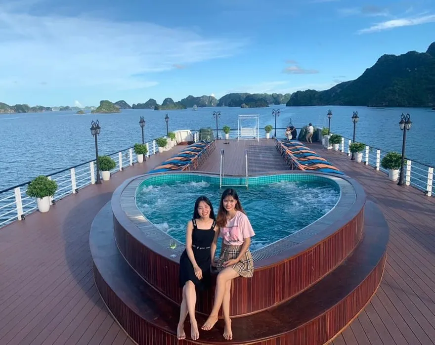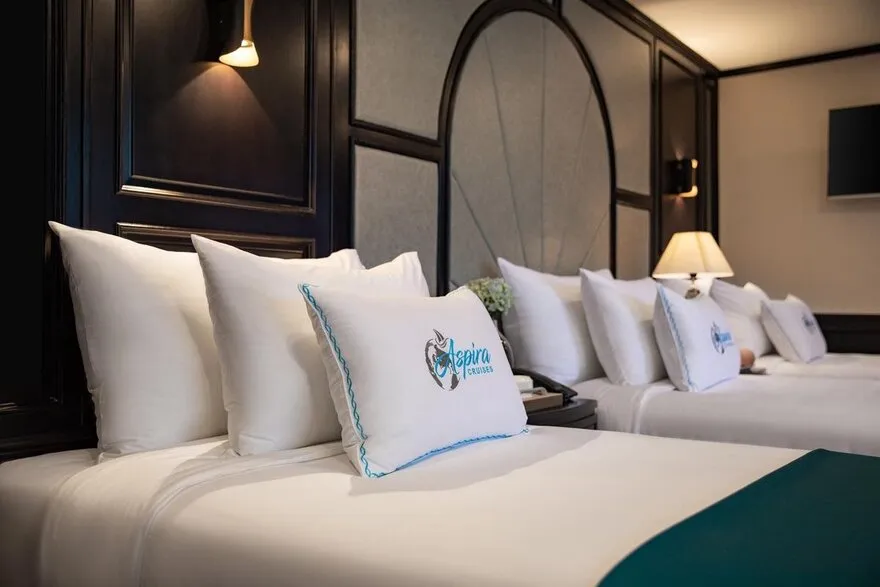 Đây là lo lắng của rất nhiều người. Tuy nhiên, bạn có thể yên tâm vì Aspira là du thuyền vỏ thép đáy đôi hiện đại với kích thước lớn (rộng gần 13m), giúp tàu vận hành cực kỳ ổn định. Hơn nữa, hải trình của tàu nằm hoàn toàn trong Vịnh Lan Hạ – khu vực được bao bọc bởi các đảo đá vôi nên mặt nước rất tĩnh lặng, ít sóng lớn. Cảm giác rung lắc gần như bằng không, đặc biệt là khi tàu neo đậu nghỉ đêm.