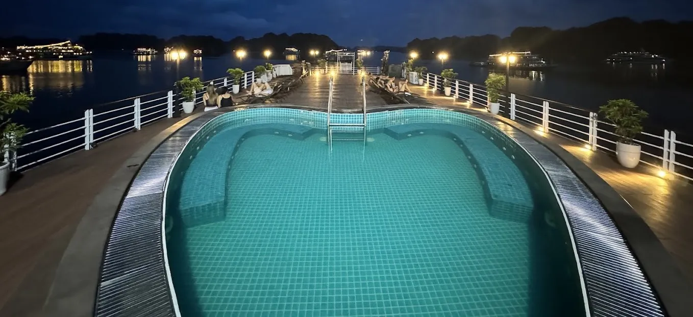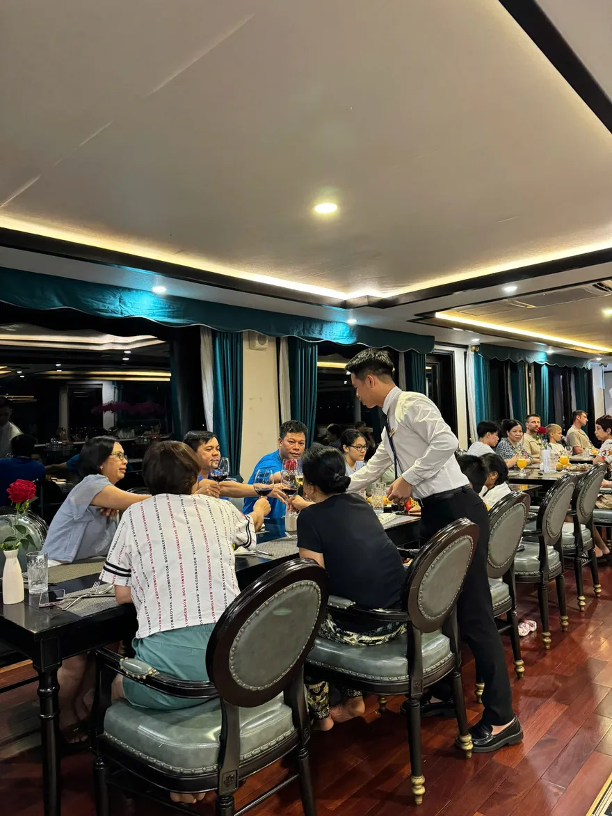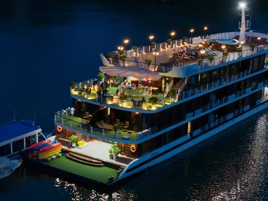 Tàu có 4 tầng và di chuyển chủ yếu bằng cầu thang bộ. Tuy nhiên, nếu gia đình có người lớn tuổi, bạn nên ưu tiên đặt các hạng phòng Junior Suite tại tầng 1. Vị trí này giúp khách hàng dễ dàng di chuyển ra khu vực lễ tân, nhà hàng và lối lên xuống tàu cao tốc mà không cần phải leo cầu thang quá nhiều.