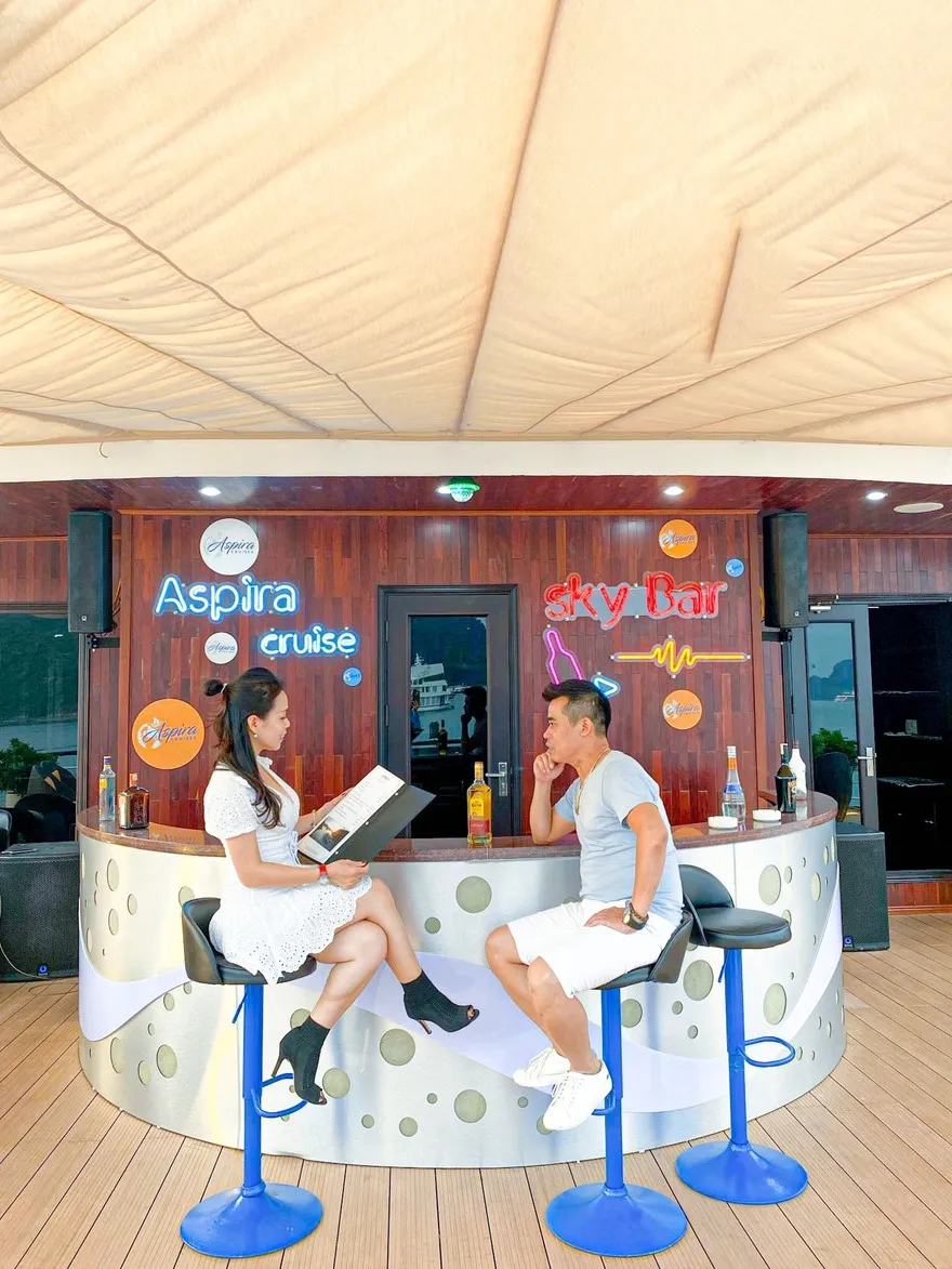 Dù Aspira có trang bị hệ thống Wi-Fi miễn phí, nhưng bạn cần lưu ý rằng khi tàu di chuyển vào sâu trong vùng lõi của vịnh, tín hiệu có thể chập chờn hoặc mất sóng tại một số khu vực bị núi đá che khuất. Đây là đặc điểm chung của các tàu trên vịnh. Mình khuyên bạn nên hoàn tất các công việc quan trọng trước khi tàu khởi hành để tận hưởng trọn vẹn kỳ nghỉ.