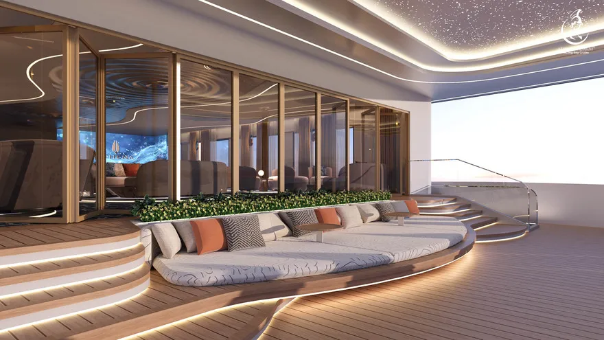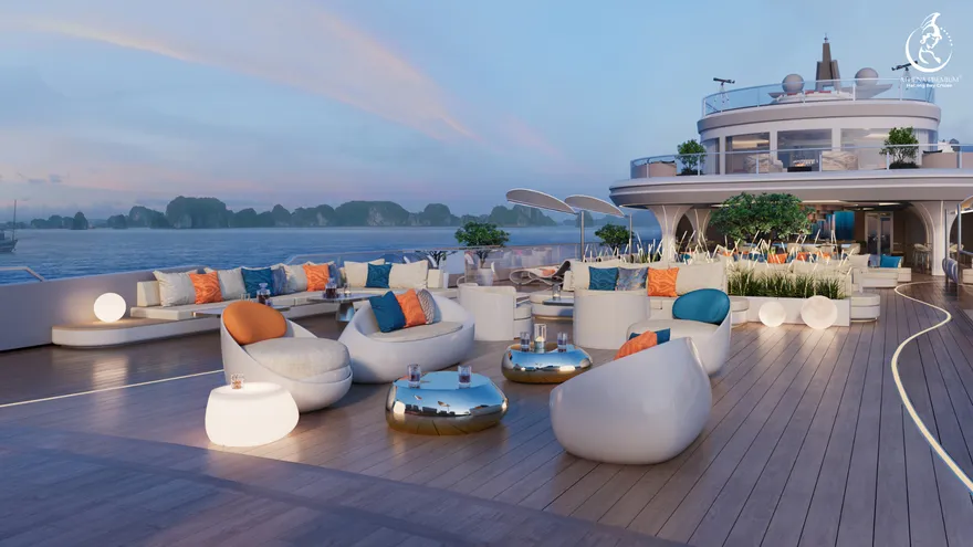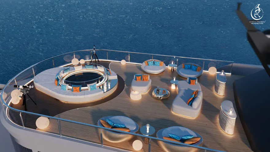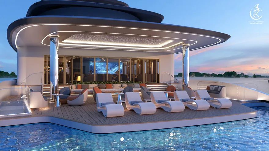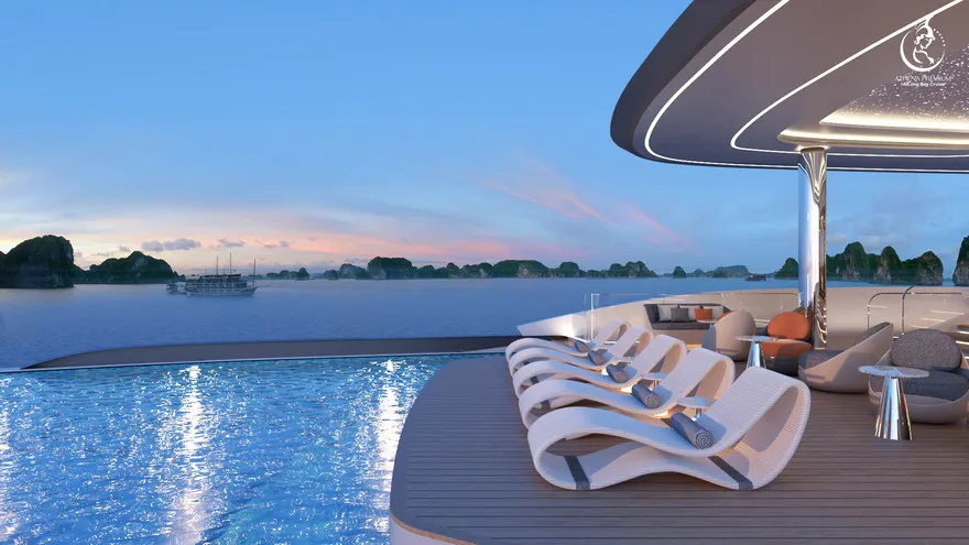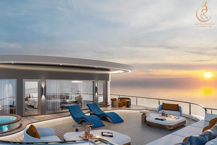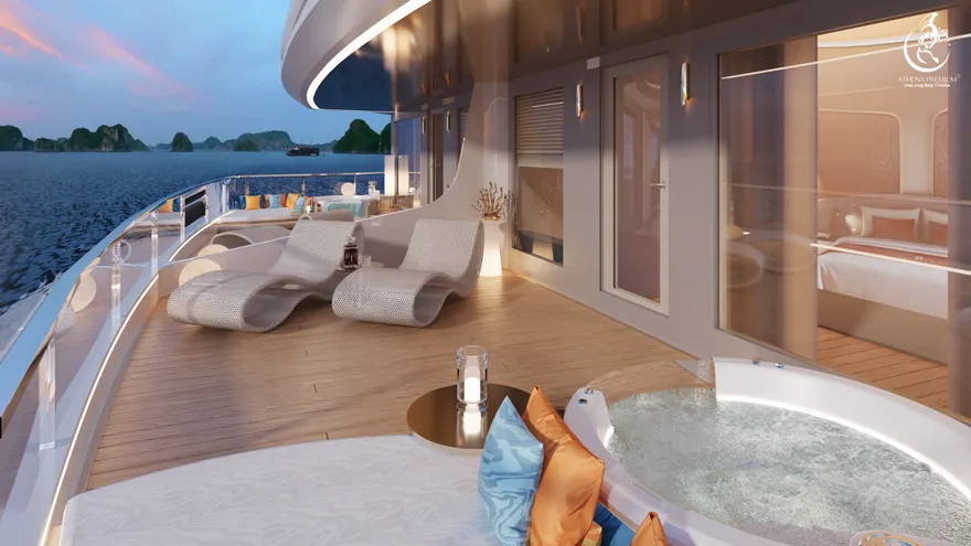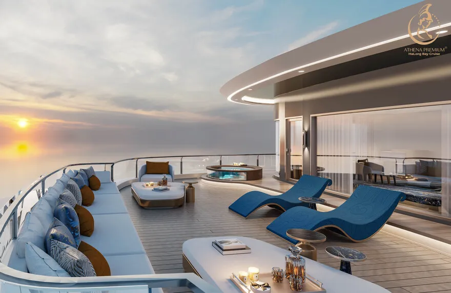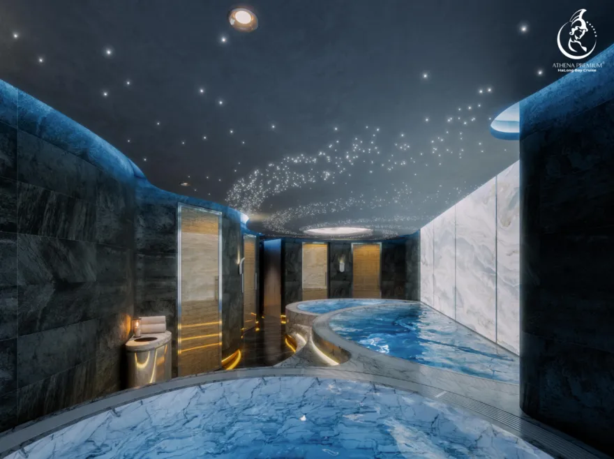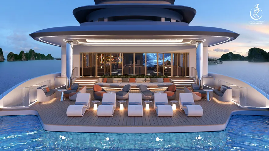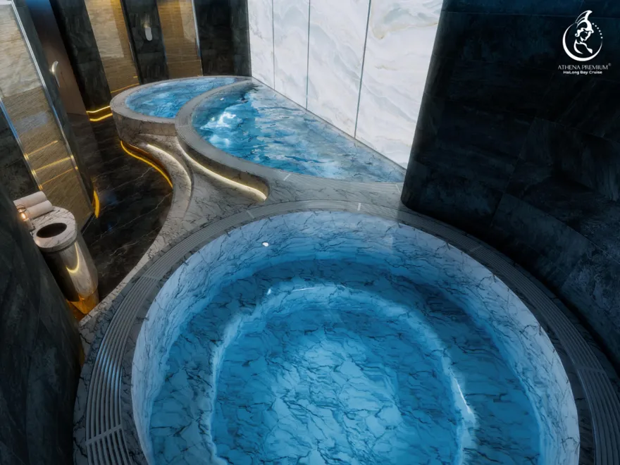 Trở về siêu du thuyền chính Athena Premium. Đây là lúc lý tưởng để bạn sử dụng hệ thống Onsen chuẩn Nhật hoặc thư giãn tại bể bơi vô cực 360 độ sau một ngày vận động.