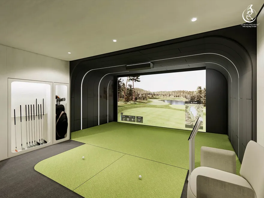 Bạn không cần mang theo bộ gậy cồng kềnh đâu! Athena Premium đã trang bị sẵn các bộ gậy tiêu chuẩn từ các thương hiệu hàng đầu và hệ thống cảm biến hiện đại. Bạn chỉ cần mang theo tâm thế của một "golfer" và tận hưởng cảm giác swing giữa biển khơi thôi.