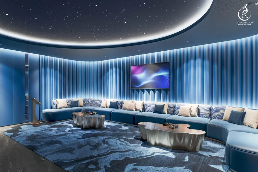 Athena Premium có không gian lounge rộng rãi và khu vực chiếu phim với bỏng ngô mà trẻ em cực kỳ yêu thích. Tuy không có dịch vụ trông trẻ chuyên nghiệp (babysitting), nhưng thủy thủ đoàn luôn sẵn lòng hỗ trợ các gia đình để các bé có một hành trình an toàn và thú vị nhất.