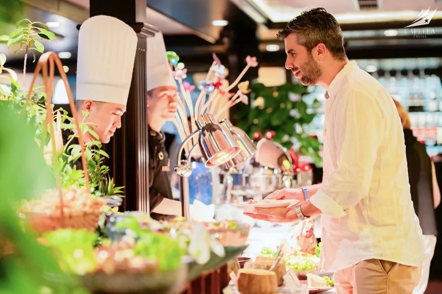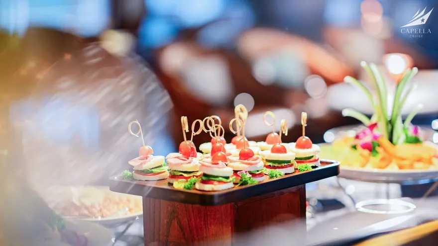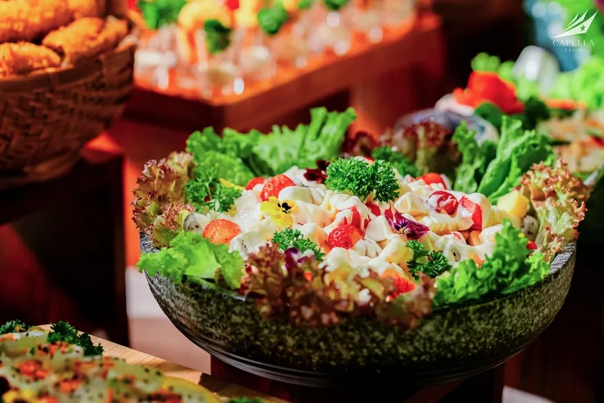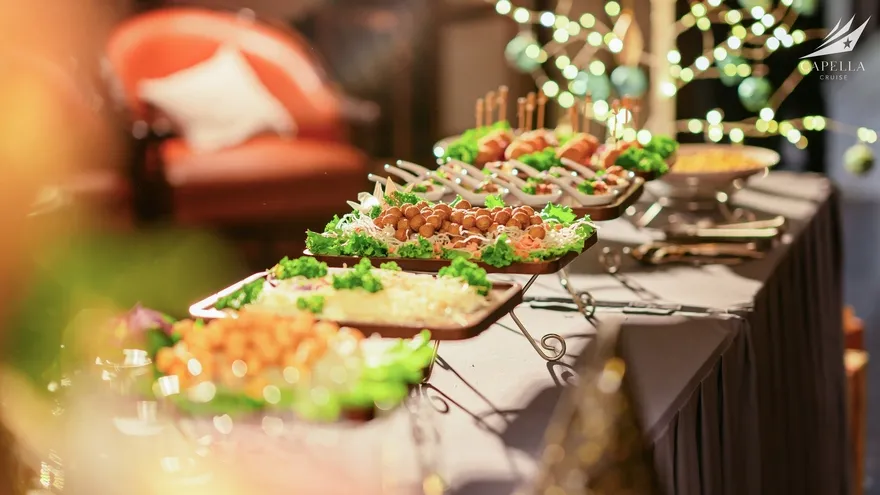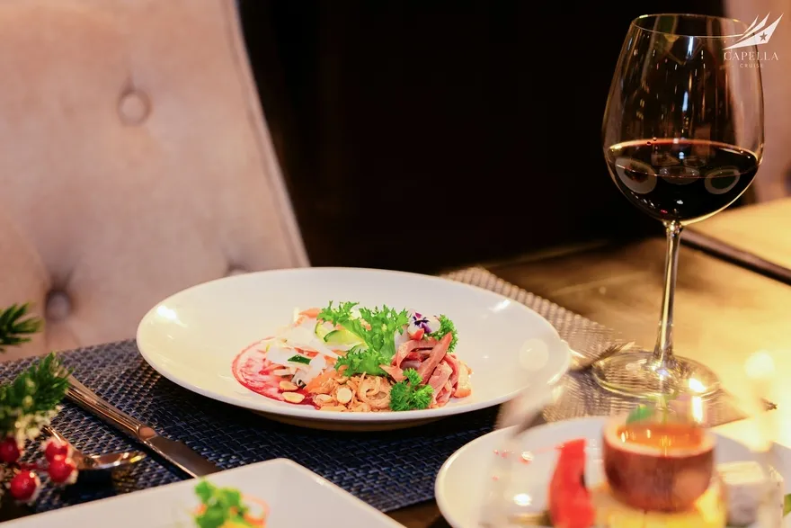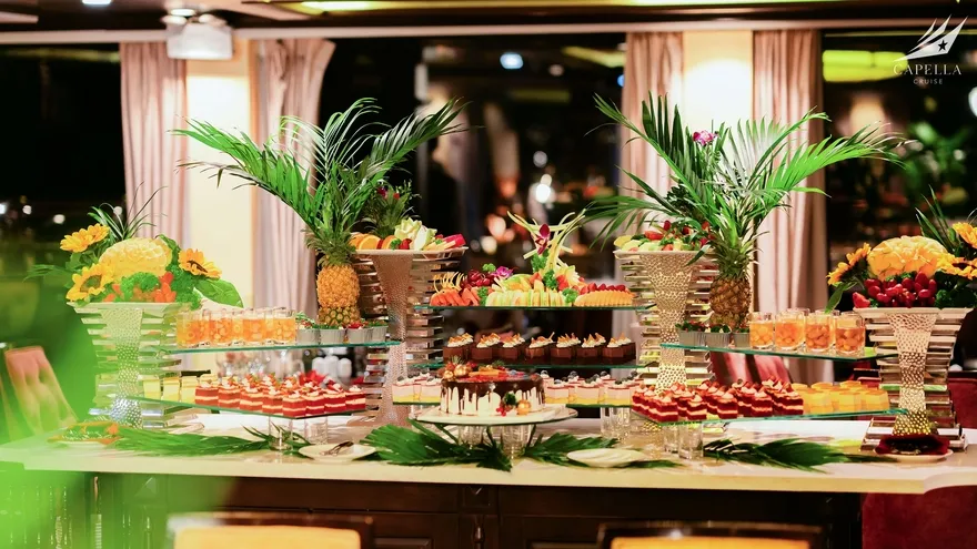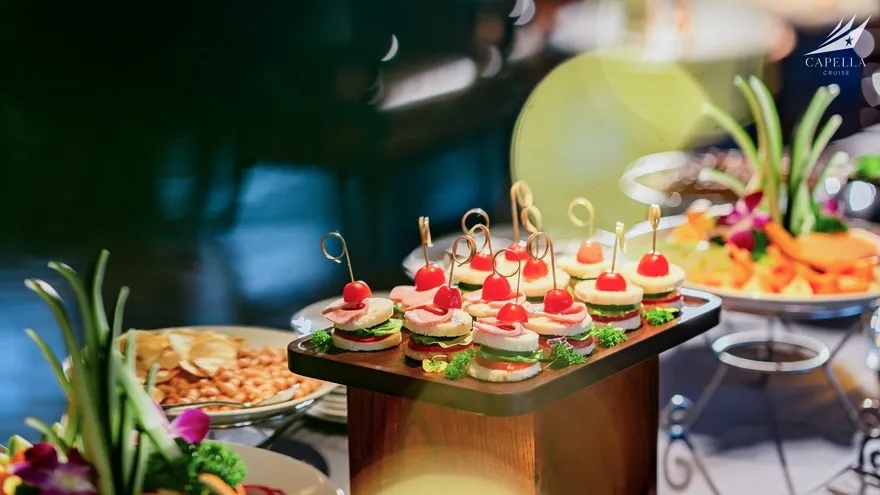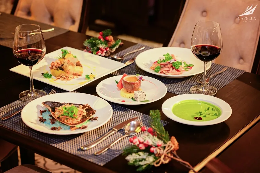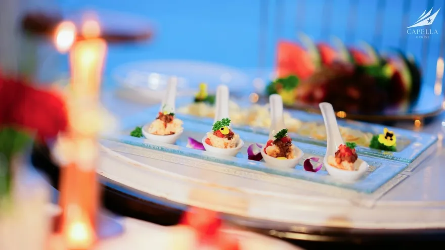 Ẩm thực tại Capella Cruise có đa dạng các món Á – Âu và bố trị bắt mắt