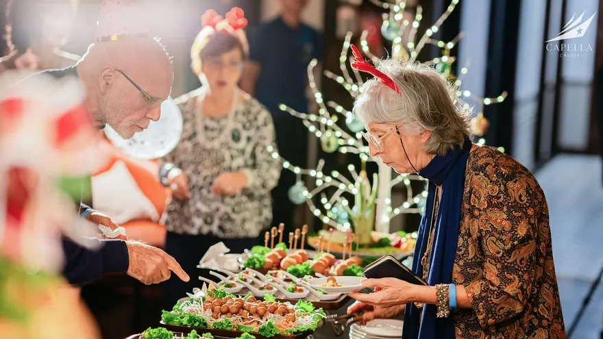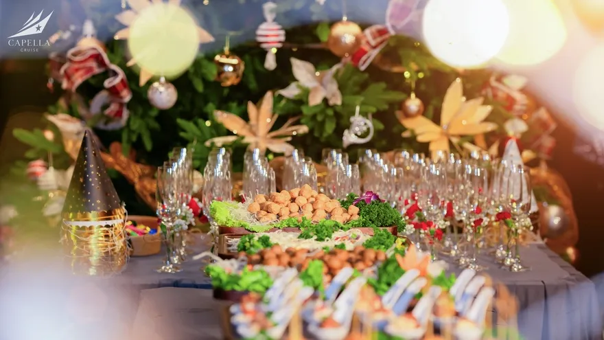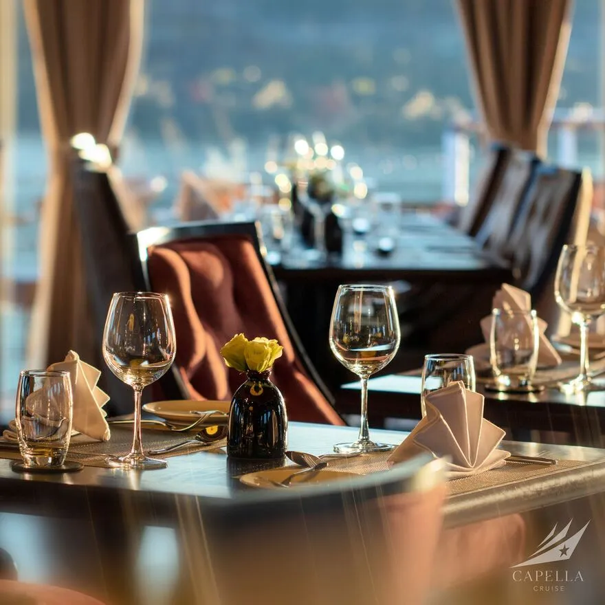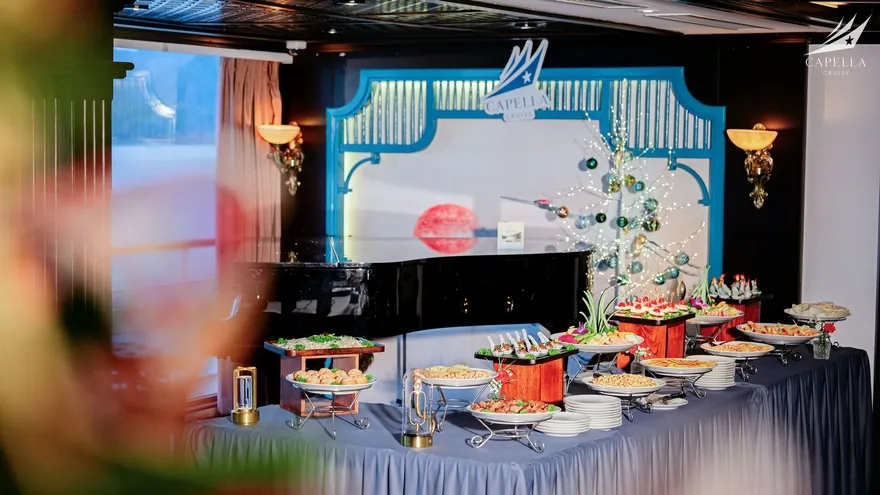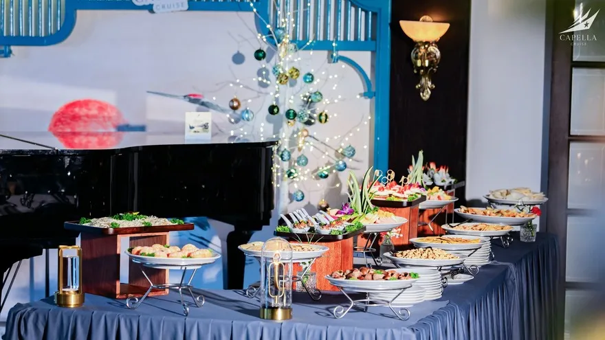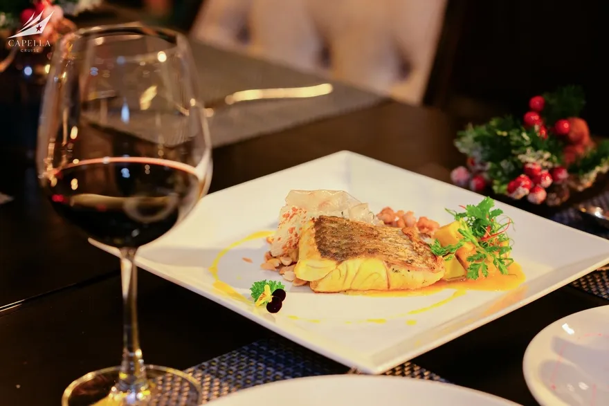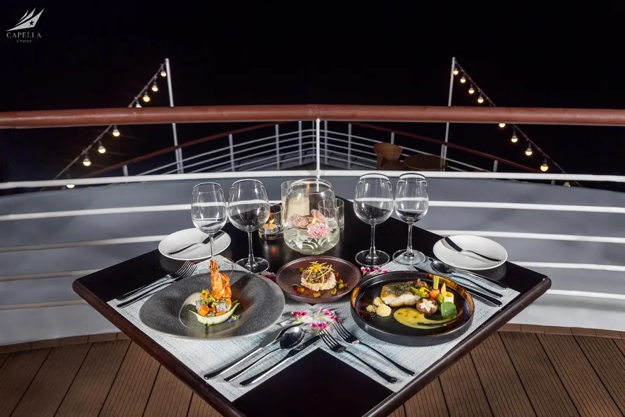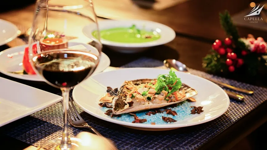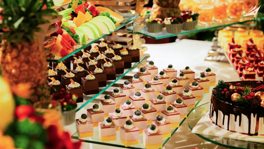 Ẩm thực tại Capella Cruise có đa dạng các món Á – Âu và bố trị bắt mắt