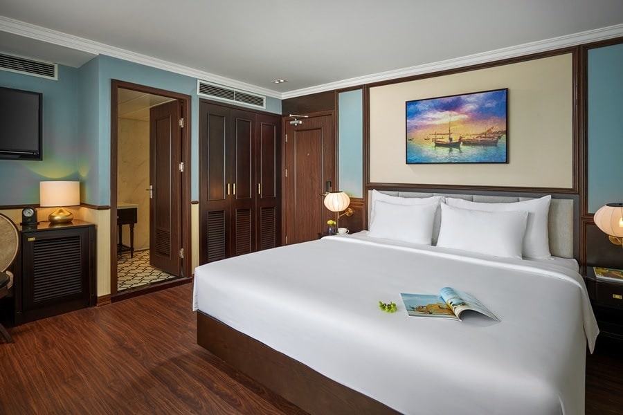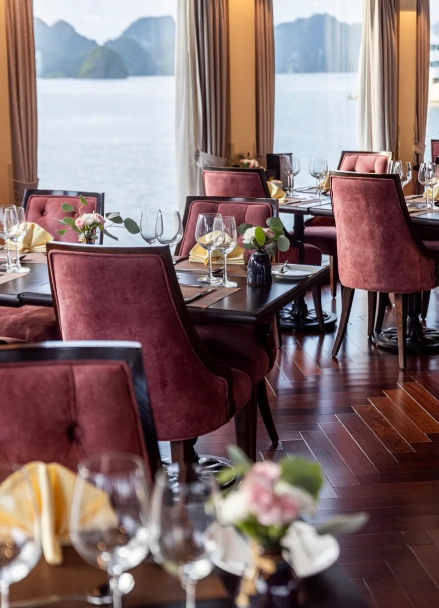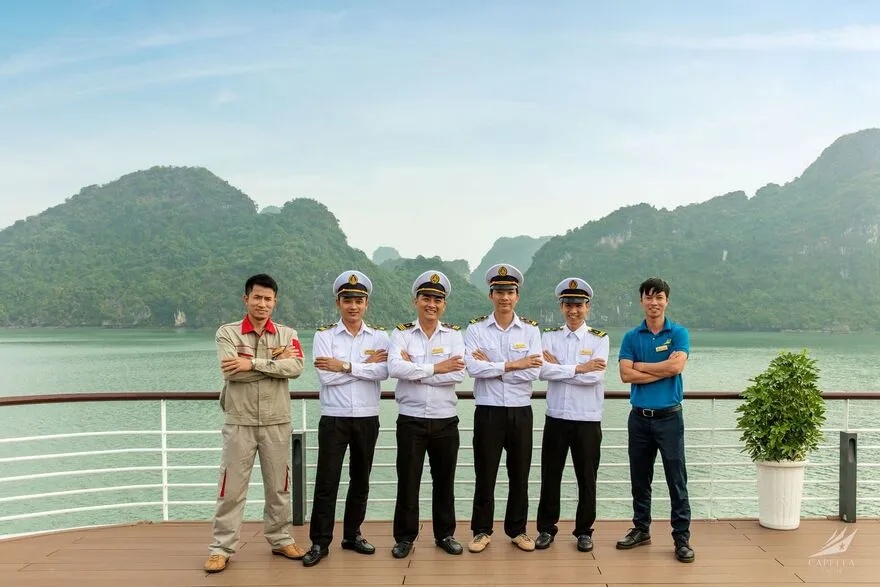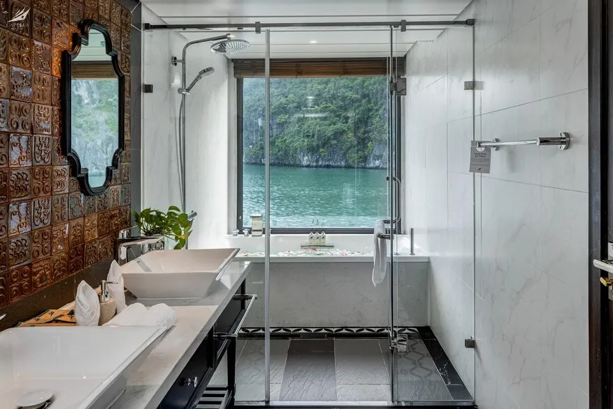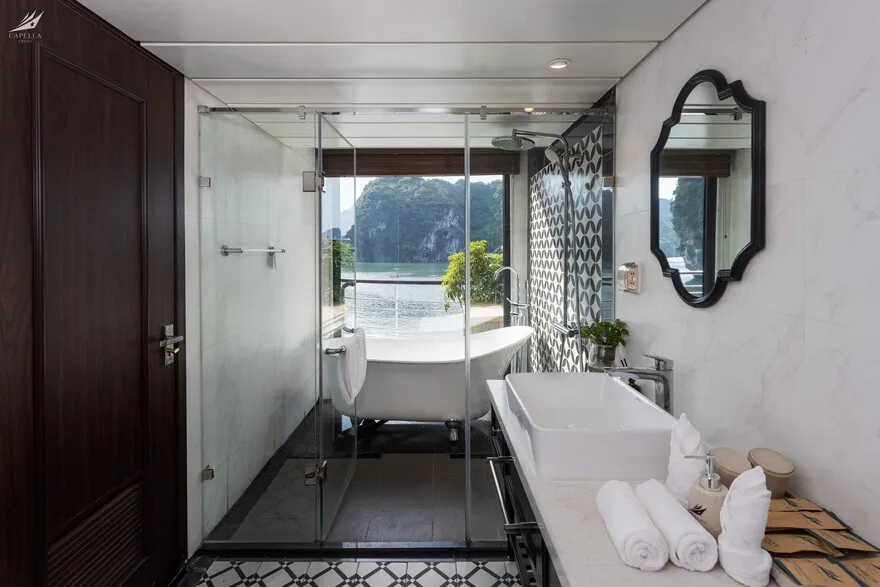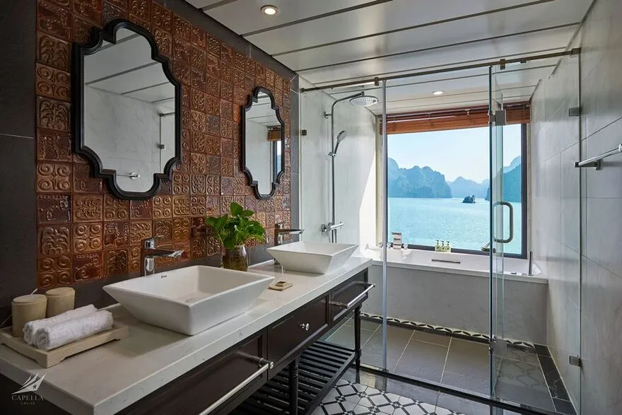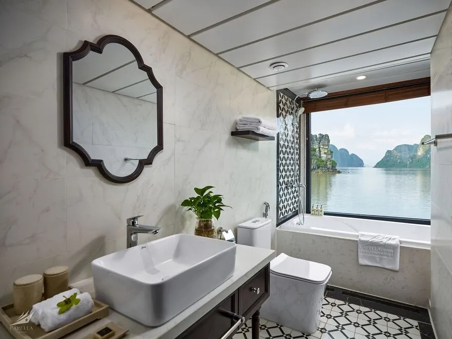 Đây là lo ngại lớn nhất của nhiều người. Tuy nhiên, Capella là du thuyền vỏ thép hiện đại với kích thước lớn (dài 68m) và hệ thống cân bằng động lực học rất tốt. Thêm vào đó, vịnh Lan Hạ vốn lặng sóng hơn vùng biển mở. Động cơ John Deere vận hành cực kỳ êm ái, giúp giảm thiểu rung lắc và tiếng ồn xuống mức thấp nhất. Nếu bạn cực kỳ nhạy cảm, mình khuyên bạn nên chọn các phòng ở tầng 1 (Oasis Suite) – nơi trọng tâm tàu thấp nhất và ổn định nhất.
