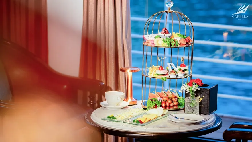 Quay trở lại du thuyền Capella. Tham gia tiệc trà chiều ngắm hoàng hôn.