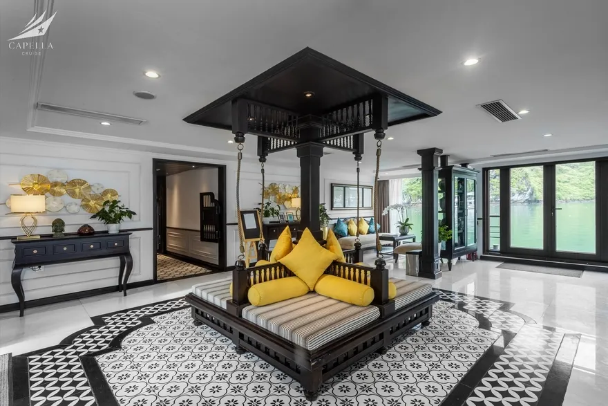 Triết lý thiết kế của Capella là sự giao thoa đầy tính nghệ thuật giữa nét lãng mạn, thanh lịch của kiến trúc Pháp và chiều sâu di sản của hồn cốt Việt Nam qua phong cách Indochine (Đông Dương). Sự kết hợp này đánh thức cảm xúc hoài cổ, mang lại một không gian ấm cúng nhưng không kém phần sang trọng, giúp mỗi vị khách khi bước chân lên tàu đều cảm nhận được sự thư thái tuyệt đối. Không chỉ dừng lại ở một con tàu duy nhất, tầm nhìn của Vietstar Cruises còn được mở rộng qua hệ sinh thái Lyra Cruise Collection với sự góp mặt của người anh em Lyra Grandeur – một phiên bản lớn hơn với 33 phòng ngủ và những tiện ích xa hoa như phòng xông hơi ngoài trời kiểu Nordic, tạo nên một chuẩn mực mới về sự xa xỉ trong lòng vịnh di sản.