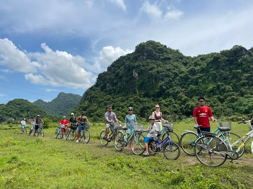 Di chuyển sang tàu nhỏ/cano cao tốc để tham quan đảo Cát Bà. Đến Làng cổ Việt Hải, quý khách trải nghiệm đạp xe xuyên rừng, ngắm nhìn nhà cổ địa phương và tham gia dịch vụ “massage cá” dưới suối.