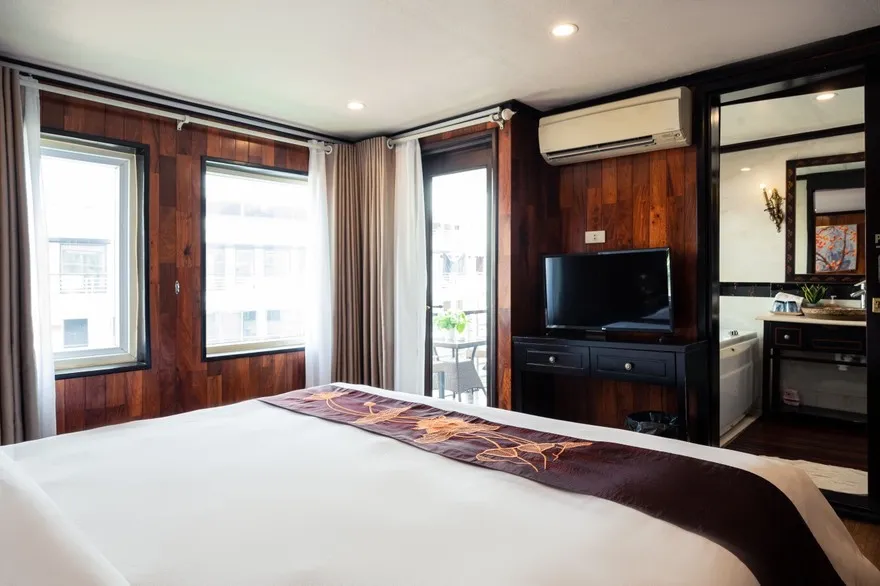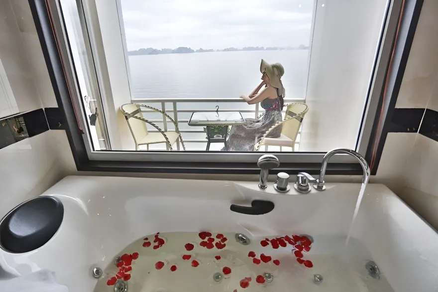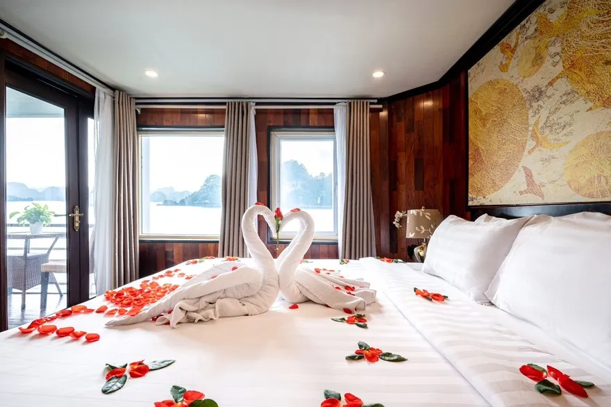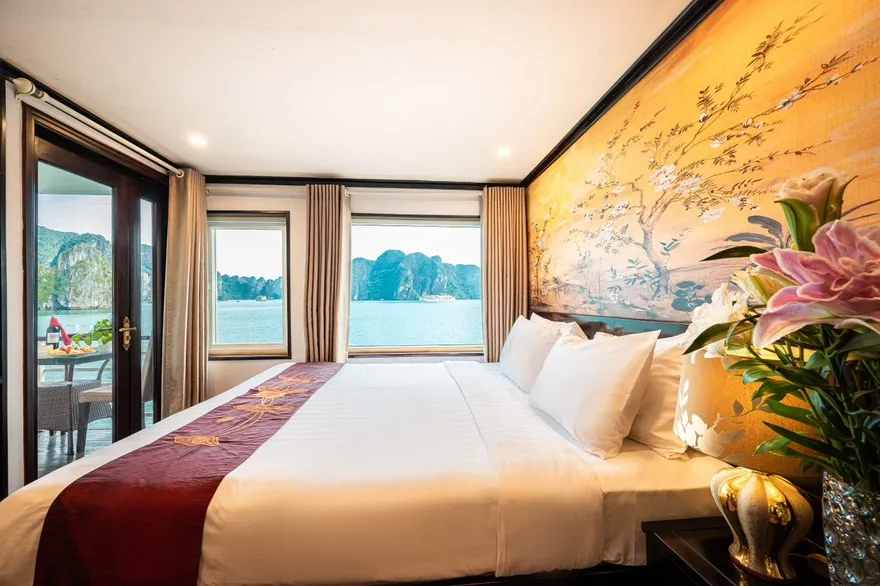 Phòng Connecting: Đối với hạng phòng Junior Ocean View, du thuyền có thiết kế 02 cặp phòng thông nhau (Connecting cabin), rất lý tưởng cho các gia đình có trẻ nhỏ hoặc nhóm bạn muốn có không gian sinh hoạt chung.