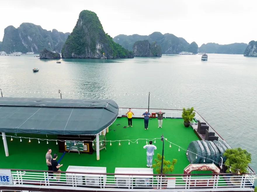 Đón bình minh và rèn luyện sức khỏe với lớp học Tai Chi trên boong tàu.