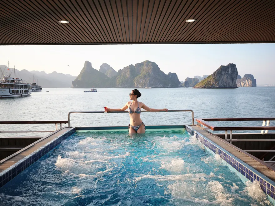 Hoàn toàn có. Thay vì leo 420 bậc đá tại Đảo Titop, bạn có thể lựa chọn ở lại du thuyền để thư giãn trong không gian lounge sang trọng, ngắm toàn cảnh vịnh từ Sundeck hoặc tận hưởng không khí sôi động của bữa tiệc hồ bơi/jacuzzi.