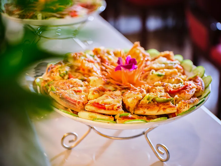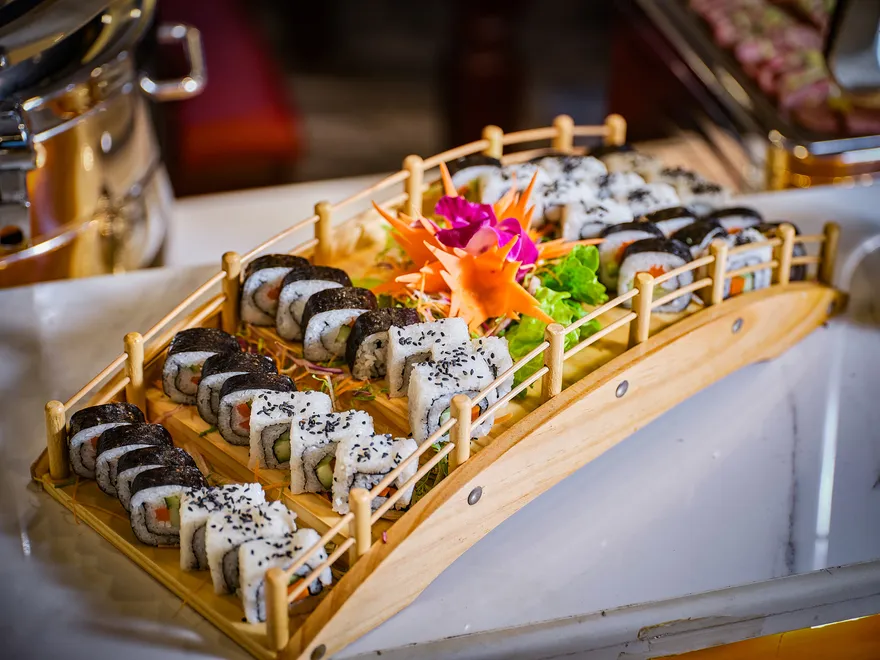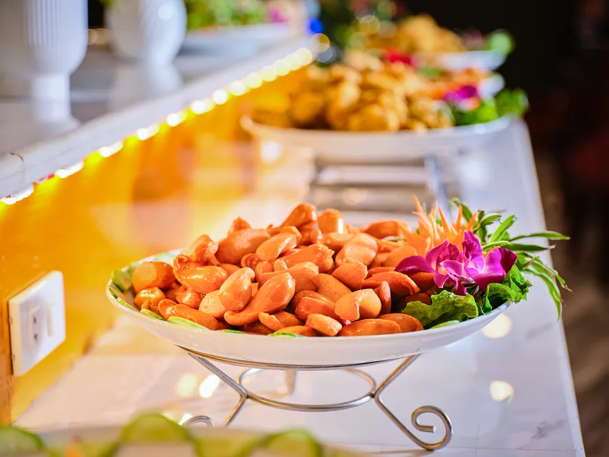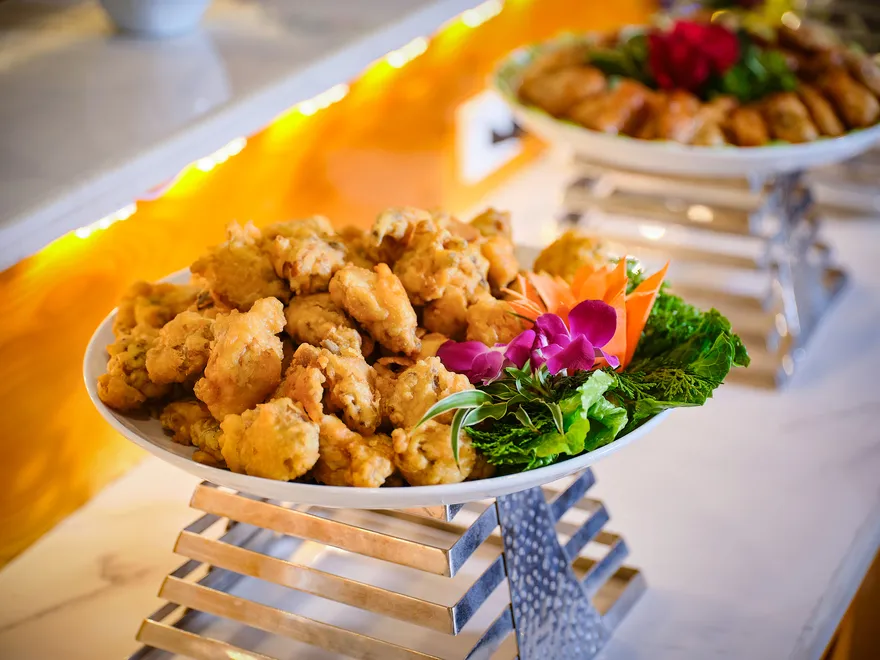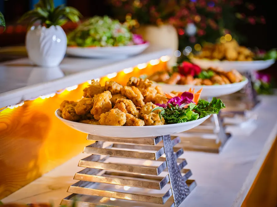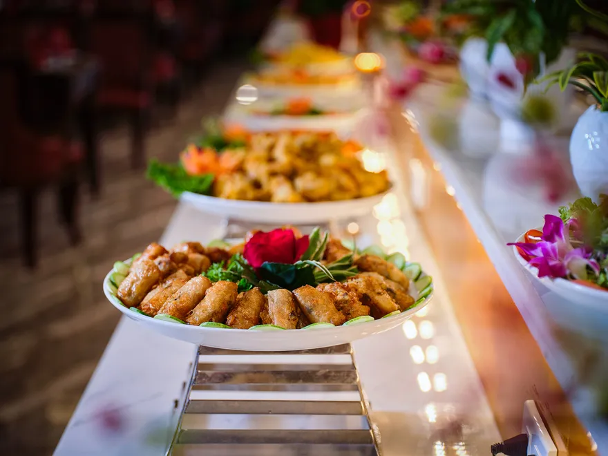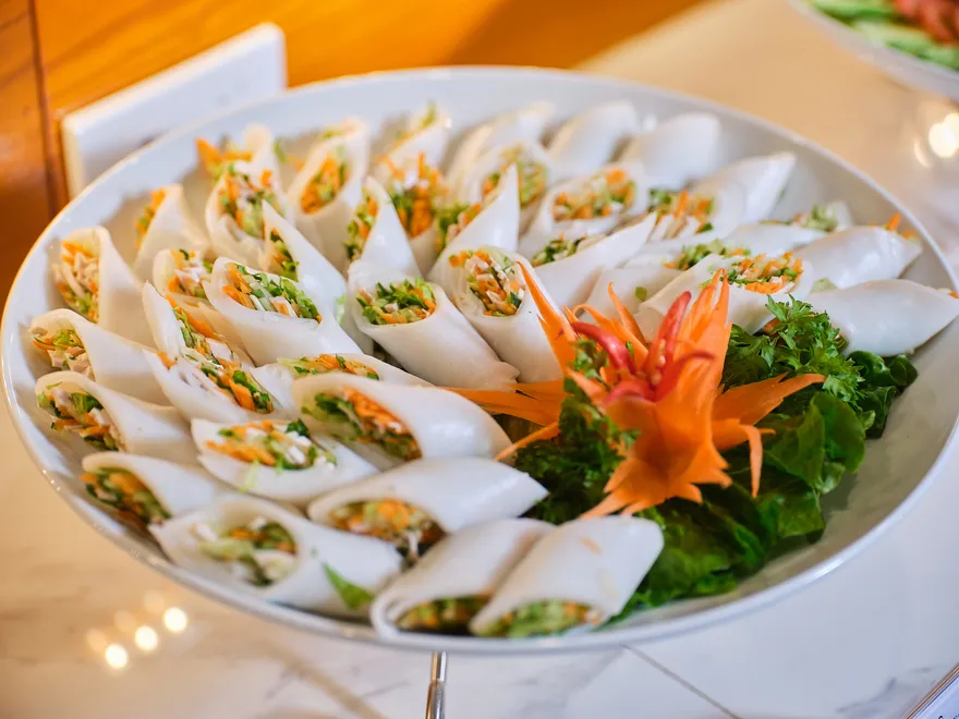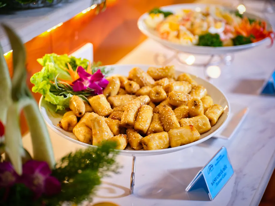 Bên cạnh hải sản, các trạm món ăn truyền thống là nơi tôn vinh những giá trị văn hóa ẩm thực Việt Nam đậm đà. Tại đây, bạn có thể tìm thấy những chiếc nem hải sản Hạ Long giòn rụm , phở cuốn thập cẩm thanh nhẹ hay món cơm chiên Dương Châu quen thuộc nhưng được chăm chút kỹ lưỡng về hương vị. Sự kết hợp khéo léo giữa phong cách buffet hiện đại và các món ăn dân dã giúp chiều lòng mọi đối tượng thực khách, từ những vị khách quốc tế muốn khám phá đặc sản địa phương đến những gia đình Việt tìm kiếm hương vị gần gũi.