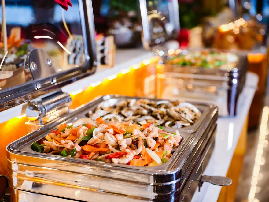 Thưởng thức bữa tối buffet đa dạng hải sản và các món ăn truyền thống Việt Nam trong không gian âm nhạc du dương .