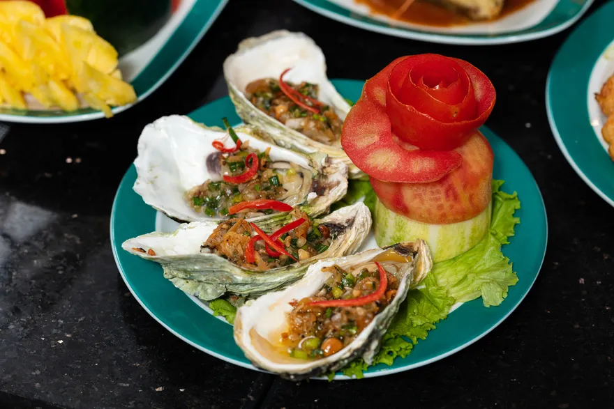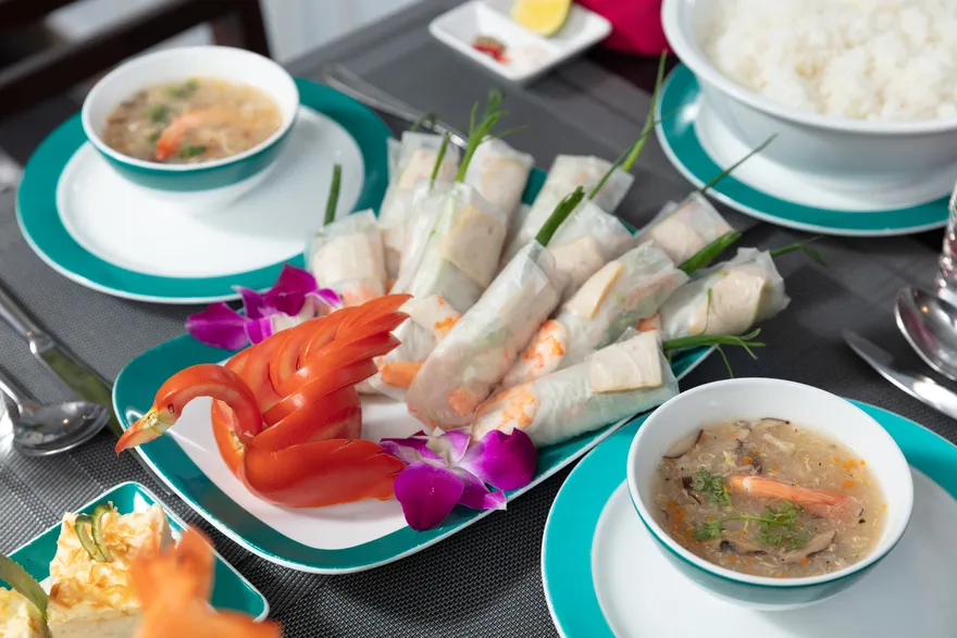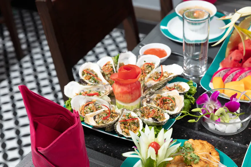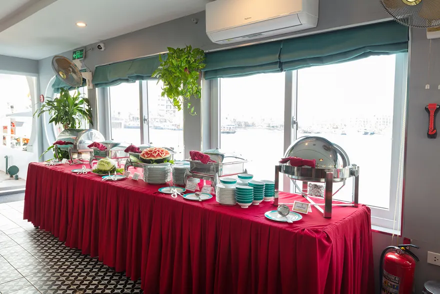 12h15: Bữa trưa thịnh soạn với những món hải sản tươi ngon đang chờ đón quý khách tại nhà hàng sang trọng trên du thuyền.