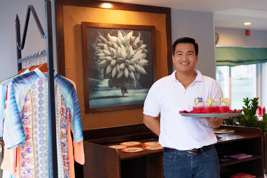Ẩn sau mỗi hải trình của Emeraude Cruises là một câu chuyện đầy cảm hứng, kết nối giữa quá khứ vàng son và những trải nghiệm hiện đại. Hành trình bắt đầu vào cuối năm 1999, khi doanh nhân trẻ người Pháp Eric Merlin tình cờ khám phá những tấm bưu thiếp cũ kỹ tại một khu chợ đồ cổ ở Paris, khắc họa hình ảnh con tàu hơi nước “Emeraude” kiêu hãnh lướt giữa Vịnh Hạ Long những năm 1920. Bị cuốn hút, ông đã tìm đến gia đình Roque – những người Pháp tiên phong đóng con tàu nguyên bản vào đầu thế kỷ 20 để đưa du khách quốc tế đầu tiên đến với kỳ quan này. Lấy cảm hứng từ di sản ấy, Eric Merlin đã hồi sinh huyền thoại với du thuyền Emeraude Classic vào năm 2003, tái hiện nét quyến rũ Pháp cổ. Cái tên “Emeraude” (Ngọc Lục Bảo) từ đó trở thành biểu tượng cho lịch sử huy hoàng và tinh thần khám phá đầy phong cách.