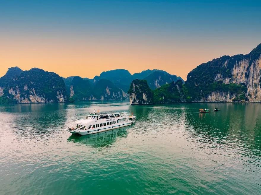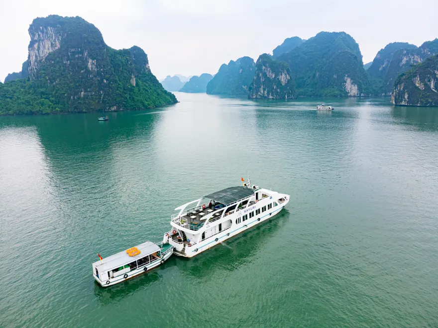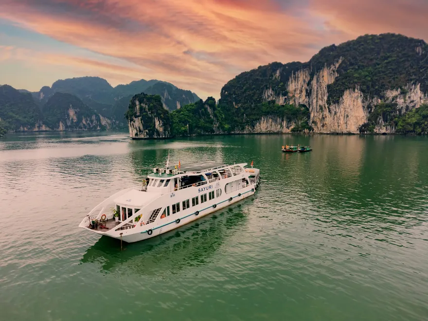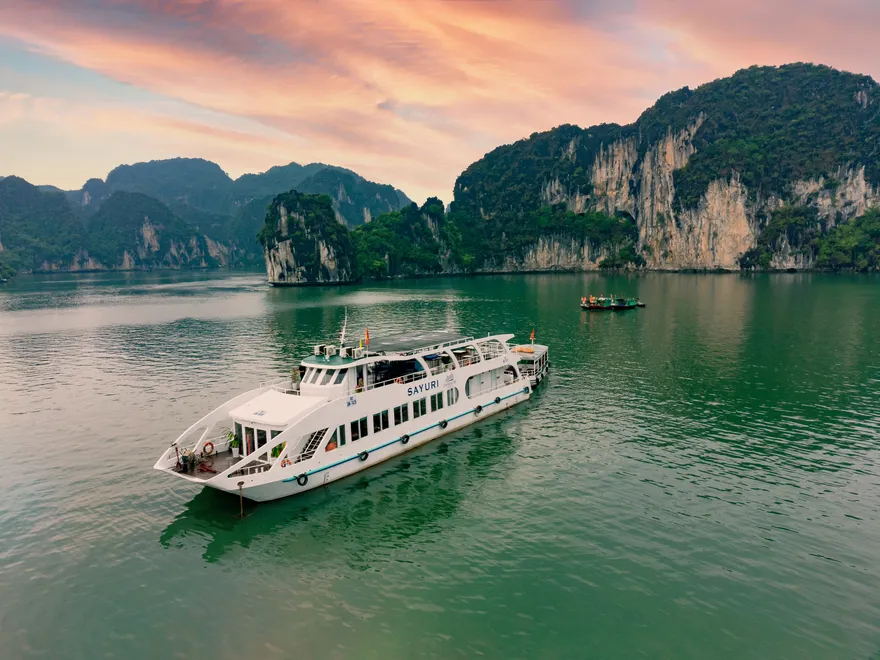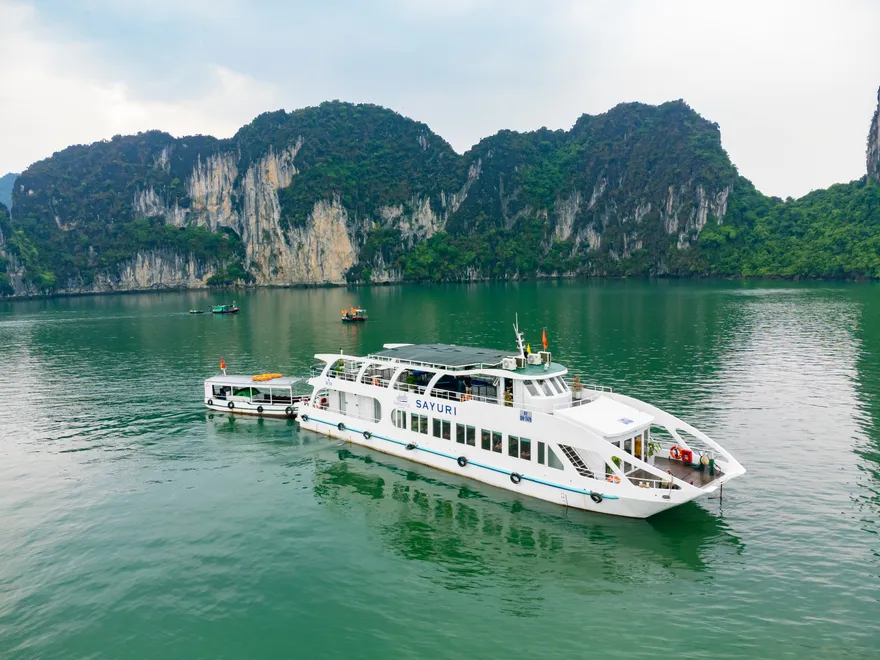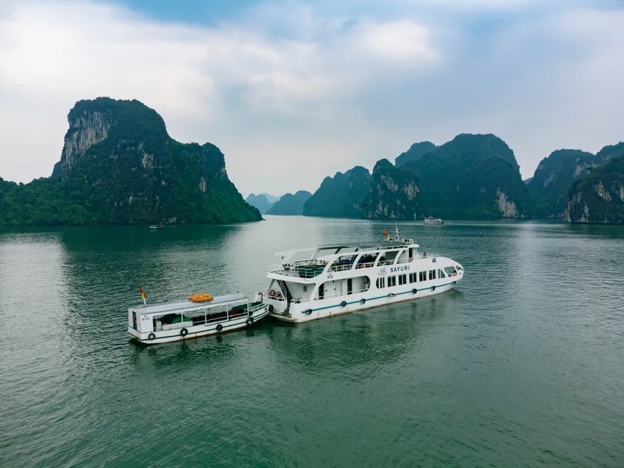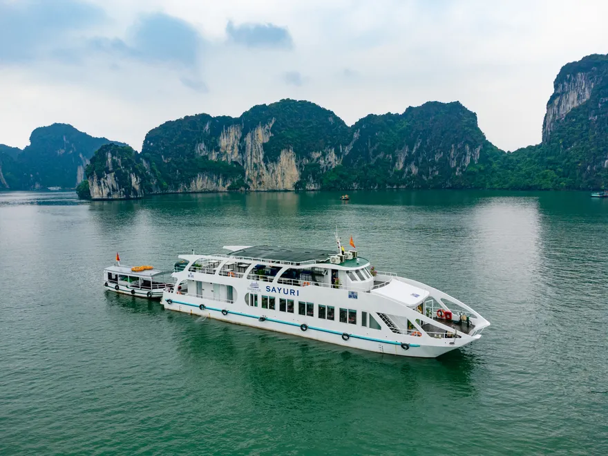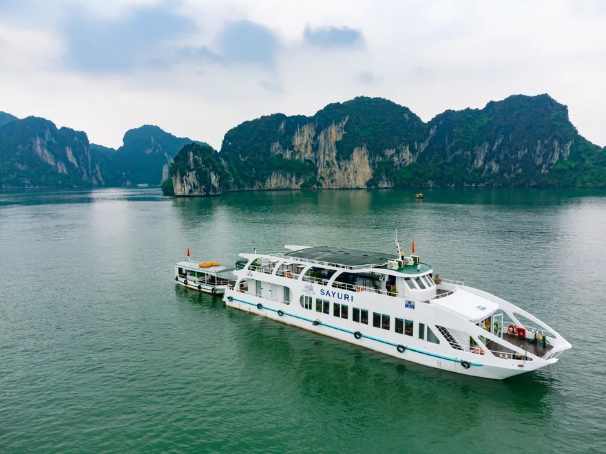 Vịnh Hạ Long, kỳ quan thiên nhiên thế giới được UNESCO vinh danh hai lần, luôn là điểm đến mời gọi những tâm hồn yêu khám phá với vẻ đẹp hùng vĩ, huyền ảo. Giữa bức tranh thủy mặc tuyệt mỹ ấy, việc lựa chọn một hành trình xứng tầm để cảm nhận trọn vẹn di sản trong một khoảng thời gian giới hạn là điều vô cùng quan trọng. Nổi bật lên như một lựa chọn độc đáo và tinh tế, du thuyền Emeraude Sayuri mang đến một làn gió mới, một nét chấm phá thanh tao đậm phong cách Nhật Bản giữa muôn vàn lựa chọn khám phá Vịnh Hạ Long. Không chỉ đơn thuần là một du thuyền Hạ Long 1 ngày, Emeraude Sayuri là hiện thân của sự sang trọng, trang nhã và một trải nghiệm cao cấp hoàn toàn khác biệt. Con tàu là sự hòa quyện giữa thiết kế lấy cảm hứng từ xứ sở Phù Tang, không gian tiện nghi hiện đại và chất lượng dịch vụ chuyên nghiệp, được bảo chứng bởi uy tín lâu năm. Là một thành viên đầy tiềm năng của đội tàu danh tiếng Emeraude Cruises, Emeraude Sayuri được quản lý và vận hành bởi Tập đoàn Thiên Minh (TMG) – một trong những tập đoàn du lịch và khách sạn hàng đầu châu Á. Sự hậu thuẫn vững chắc này đảm bảo mỗi hải trình trên Emeraude Sayuri không chỉ là một chuyến đi ngắm cảnh, mà còn là một trải nghiệm đẳng cấp, an toàn và đáng nhớ giữa lòng kỳ quan thiên nhiên thế giới.