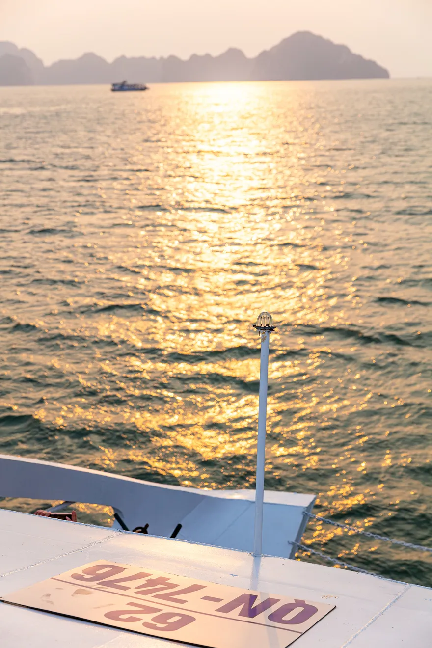 15h30: Thưởng thức khoảnh khắc hoàng hôn lãng mạn trên vịnh Hạ Long. Quý khách có thể nghỉ ngơi, thư giãn với chương trình “Happy Hour” và tham gia lớp học nấu ăn thú vị. Trên đường quay trở về cảng, du thuyền sẽ tiếp tục đưa quý khách đi qua những cảnh quan tuyệt đẹp khác.