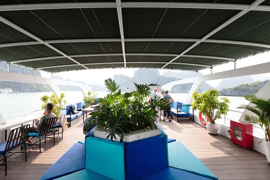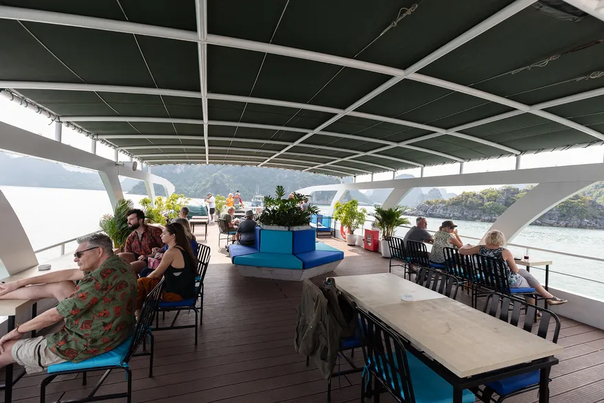 Bên cạnh sự tinh tế trong ẩm thực, hành trình của Sayuri còn được lấp đầy bởi các hoạt động khám phá đặc sắc, tiêu biểu là hoạt động tham quan và chiêm ngưỡng các hang động kỳ vĩ – những báu vật thiên nhiên của vùng vịnh. Đối với những ai tìm kiếm sự tĩnh lặng, khu vực Sundeck rộng lớn chính là nơi tuyệt vời nhất để thư giãn, tắm nắng và thả mình vào không gian bao la để tận hưởng trọn vẹn gió biển cùng cảnh sắc ngoạn mục của Hạ Long. Tất cả hòa quyện tạo nên một hành trình trọn vẹn, đáp ứng nhu cầu khắt khe của cả khách du lịch cá nhân lẫn các đoàn khách chuyên nghiệp
