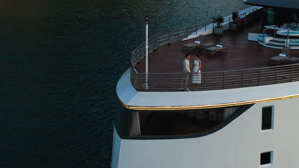 Khác biệt với những tuyến du lịch đại trà đông đúc, Grand Pioneers còn tiên phong khai phá “Hành trình Di sản” (The Legacy Journey). Lịch trình này đưa du khách đi sâu vào vùng lõi hoang sơ của Vịnh Bái Tử Long và Công viên Đá Xếp – nơi được mệnh danh là bảo tàng địa chất ngoài trời với lịch sử hơn 320 triệu năm. Du khách sẽ có cơ hội chèo thuyền Kayak giữa những vụng biển tĩnh lặng, thăm các làng chài cổ kính hay đơn giản là đón bình minh với bài tập Tai Chi trên Sundeck rộng lớn. Với dịch vụ trọn gói từ các bữa ăn, vé tham quan đến các hoạt động trải nghiệm, mỗi phút giây trên tàu đều là sự thư giãn tuyệt đối.