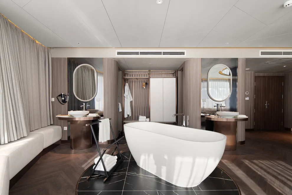 Hệ thống phòng nghỉ trên Grand Pioneers I được thiết kế theo tư duy của một khách sạn hạng sang với toàn bộ là hạng phòng Suite. Điểm đặc biệt nhất chính là hệ thống điều hòa trung tâm làm lạnh bằng nước giúp luồng không khí luôn tươi mới, loại bỏ mùi ẩm mốc đặc trưng của biển. Với diện tích từ 30m² đến 350m², mỗi phòng đều có cửa sổ lớn hoặc ban công riêng biệt. Nếu các hạng phòng Ocean hay Executive mang lại sự tinh tế thì Oceania Suite với tầm nhìn panorama 360 độ và “biệt thự nổi” Owner’s Suite (rộng 350m² với bể sục Jacuzzi riêng) chính là đỉnh cao của sự hưởng thụ dành cho giới thượng lưu – những đặc quyền mà bạn chỉ có thể tìm thấy trên con tàu số I này.
