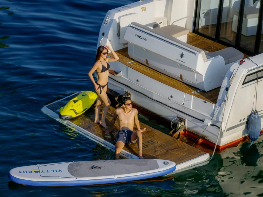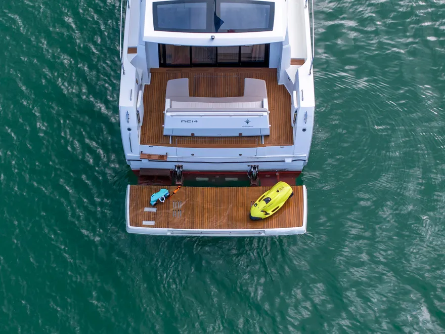 Triết lý thiết kế của mẫu du thuyền này dựa trên nền tảng của sự thanh lịch đương đại, ưu tiên các đường nét thuần khiết và sạch sẽ để tạo nên một diện mạo vượt thời gian. Với chiều dài 14 mét, NC 14 được thiết kế đặc biệt để mang lại sự thoải mái tối đa cho người sử dụng, biến mỗi hành trình trên biển thành một trải nghiệm sống đẳng cấp và tự do như trong chính ngôi nhà của mình.