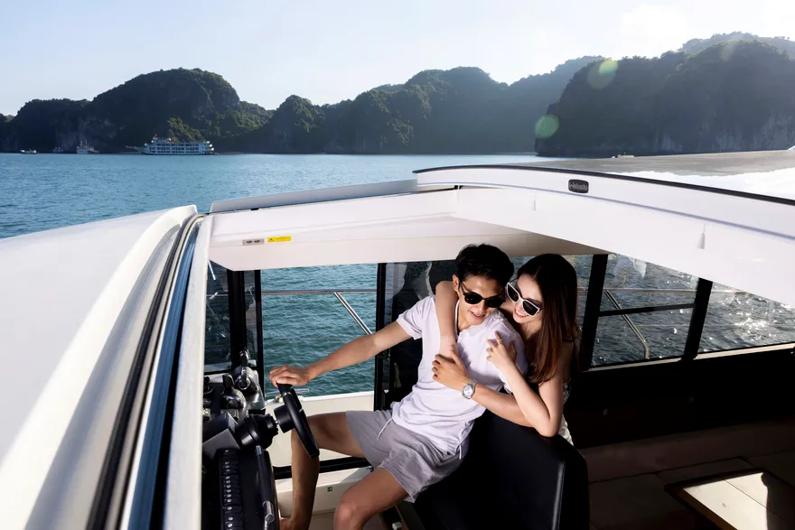 Không gian riêng tư tại các vụng biển tĩnh lặng là nơi lý tưởng để bạn tự do bơi lội, chèo thuyền kayak hoặc ngồi thuyền nan len lỏi qua các chân núi đá. Đặc biệt, trong hành trình này, bạn còn được tặng kèm set quà tặng “Hương vị nhiệt đới” để tăng thêm sự ngọt ngào cho chuyến đi. Trên đường quay trở về cảng, du thuyền sẽ đưa bạn đi ngang qua những thắng cảnh nổi tiếng khác như hòn Ngón Tay và hòn Con Sâu, khép lại một hành trình trải nghiệm tinh tế và trọn vẹn giữa kỳ quan thiên nhiên thế giới.