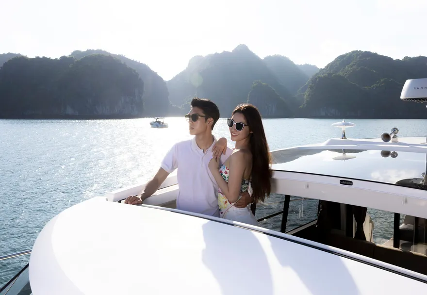 Trên đường quay trở về cảng, du thuyền sẽ đưa bạn đi qua hòn Ngón Tay và hòn Con Sâu, đúng vào thời điểm hoàng hôn bắt đầu buông xuống rực rỡ trên mặt vịnh. Khoảnh khắc này kết thúc một ngày dài đầy ắp kỷ niệm, nơi sự phục vụ chuyên nghiệp của đội ngũ thuyền viên cùng những tiện ích đẳng cấp đã tạo nên một kỳ nghỉ ngắn nhưng vô cùng tinh tế và đáng nhớ.