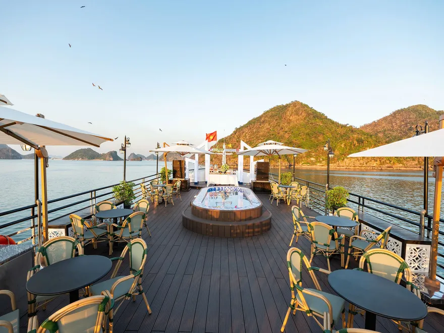 Cao trào của chuyến đi nằm ở thử thách chinh phục đỉnh núi trên đảo Ti Tốp. Cảm giác mồ hôi rơi trên trán để rồi đổi lại là tầm nhìn 360 độ ôm trọn vẹn sự kỳ vĩ của hàng nghìn đảo đá vôi là một sự “thưởng phạt” xứng đáng cho nỗ lực của bạn. Và khi cơ thể đã bắt đầu thấm mệt sau những hoạt động vận động, Sunset Party xuất hiện như một sự vỗ về tâm lý đầy tinh tế. Giữa không gian sundeck lộng gió, âm nhạc sôi động hòa quyện cùng sắc vàng cam rực cháy của bầu trời hoàng hôn sẽ tạo nên một “điểm chạm” cảm xúc cực đại. Đó không chỉ là một bữa tiệc trà chiều, mà là khoảnh khắc bạn nhận ra rằng sự xa xỉ đích thực chính là được sống trọn vẹn trong vẻ đẹp của hiện tại.