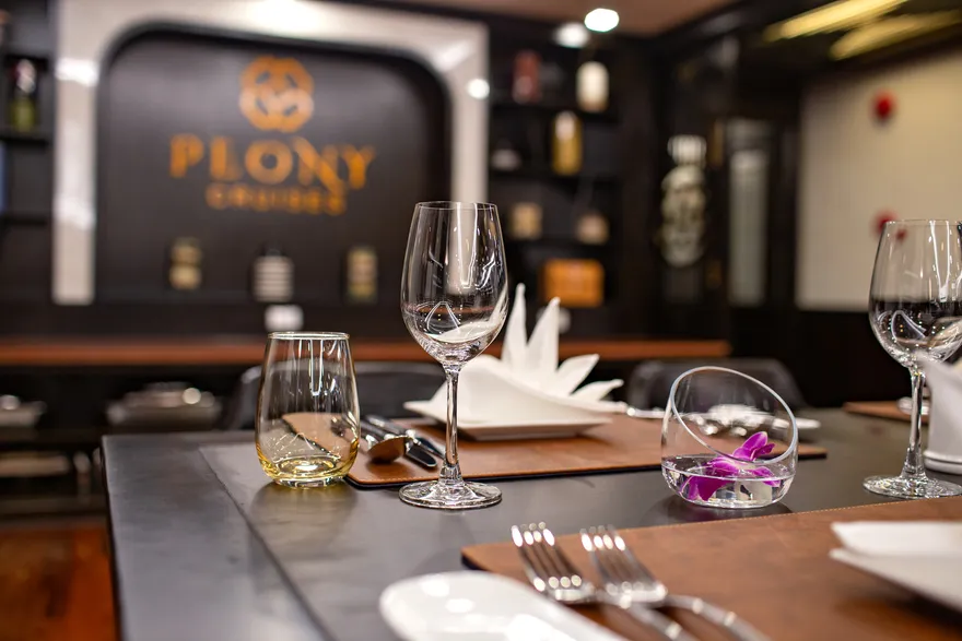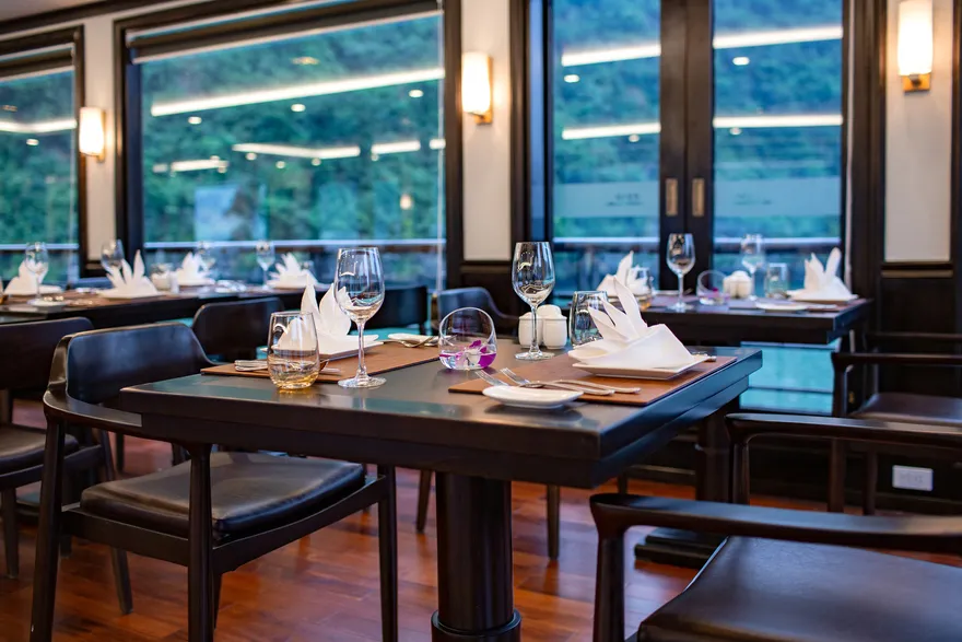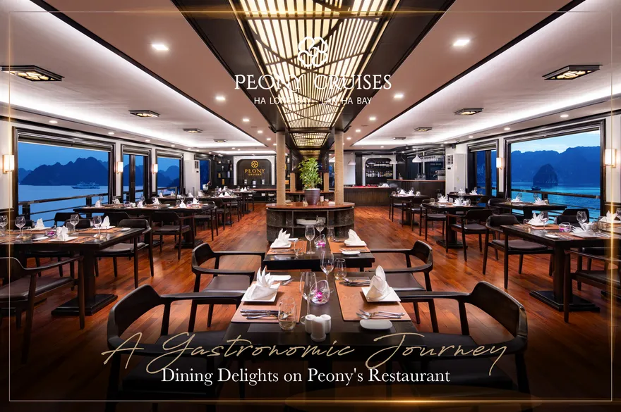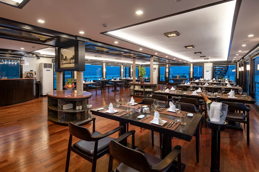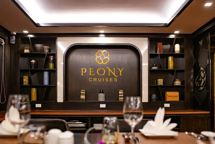 Nhà hàng của Peony Cruises Ha Long có thiết kế sang trọng