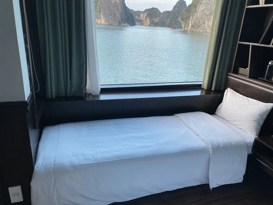Các cabin của Peony Cruises đều được bố trí ban cong với view hướng ra Vịnh Hạ Long