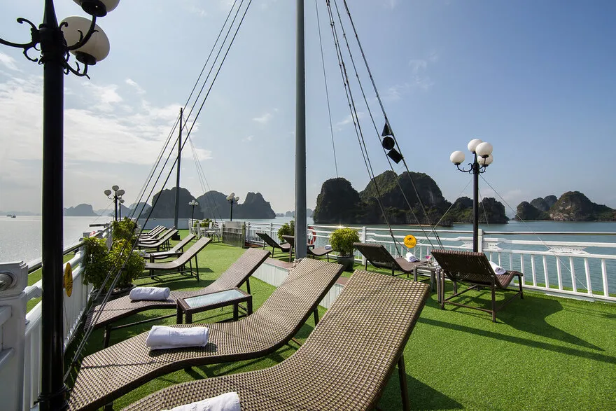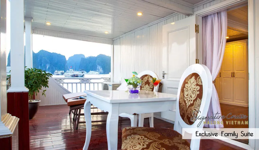 Sự khác biệt còn thể hiện rõ ở tiện nghi: trong khi Signature tự hào với Jacuzzi riêng trong mọi phòng – một điểm nhấn độc đáo cho sự thư giãn cá nhân – thì nhiều đối thủ cạnh tranh khác như Capella hay Stellar of the Seas lại thu hút bằng bể bơi chung lớn trên sundeck và nhiều tiện ích giải trí khác. Về định vị, Signature tập trung vào trải nghiệm 5 sao cốt lõi chất lượng cao (phòng sang có Jacuzzi, ẩm thực tinh tế, dịch vụ tận tâm, vịnh vắng) thay vì sự xa hoa trọn gói của phân khúc ultra-luxury như Emperor Cruises hay số lượng tiện ích đa dạng của các tàu lớn.