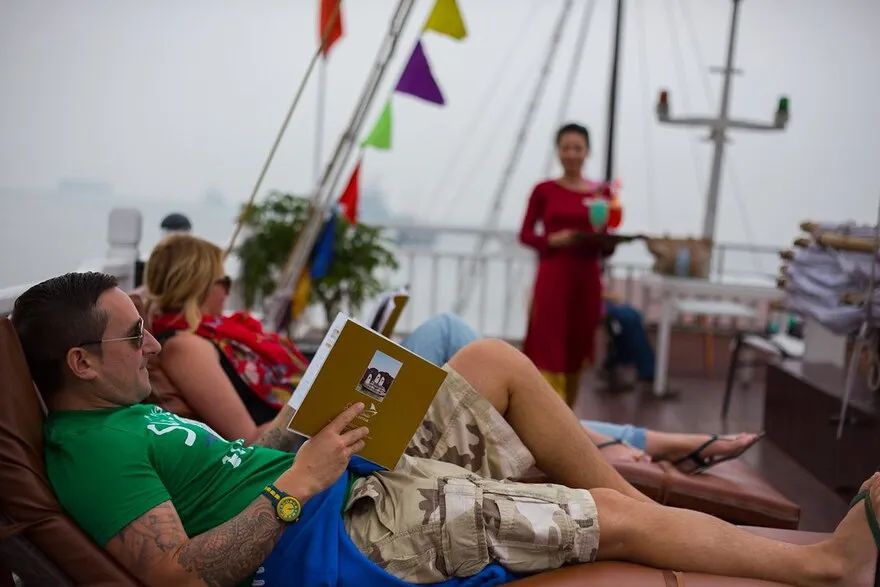 Thưởng thức bữa trưa mang phong cách đặc trưng được phục vụ ngay trên tàu nhỏ