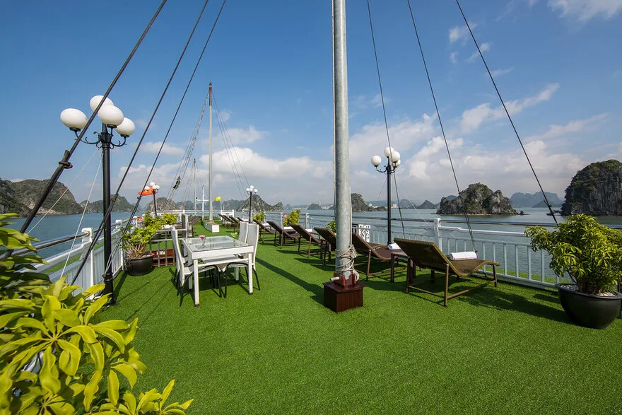 Tuy nhiên, do cấu trúc tàu gỗ truyền thống, du thuyền hiện chưa trang bị thang máy; đội ngũ nhân viên sẽ luôn sẵn sàng hỗ trợ du khách khi di chuyển giữa các tầng chức năng như nhà hàng hay sundeck.