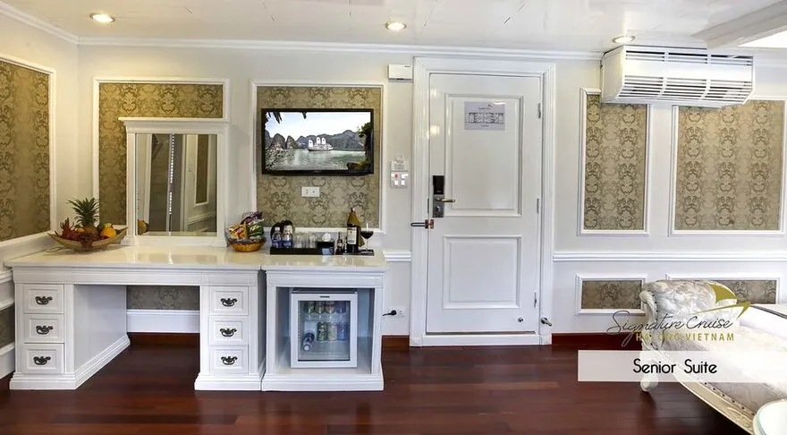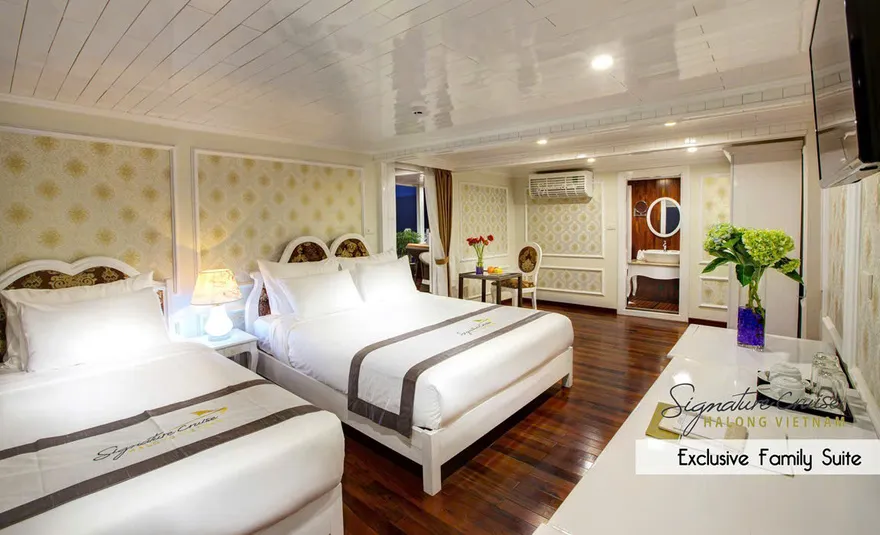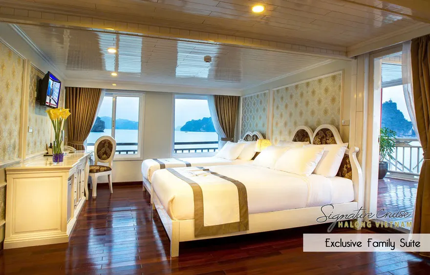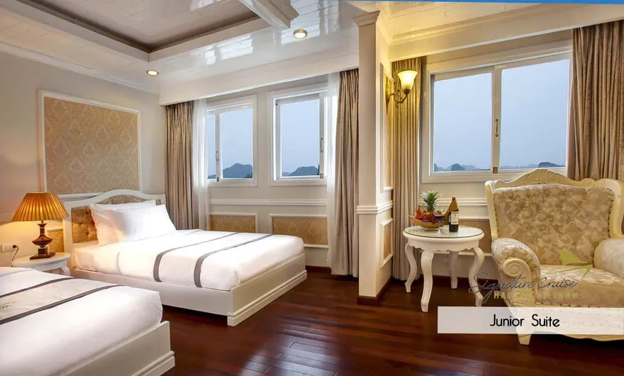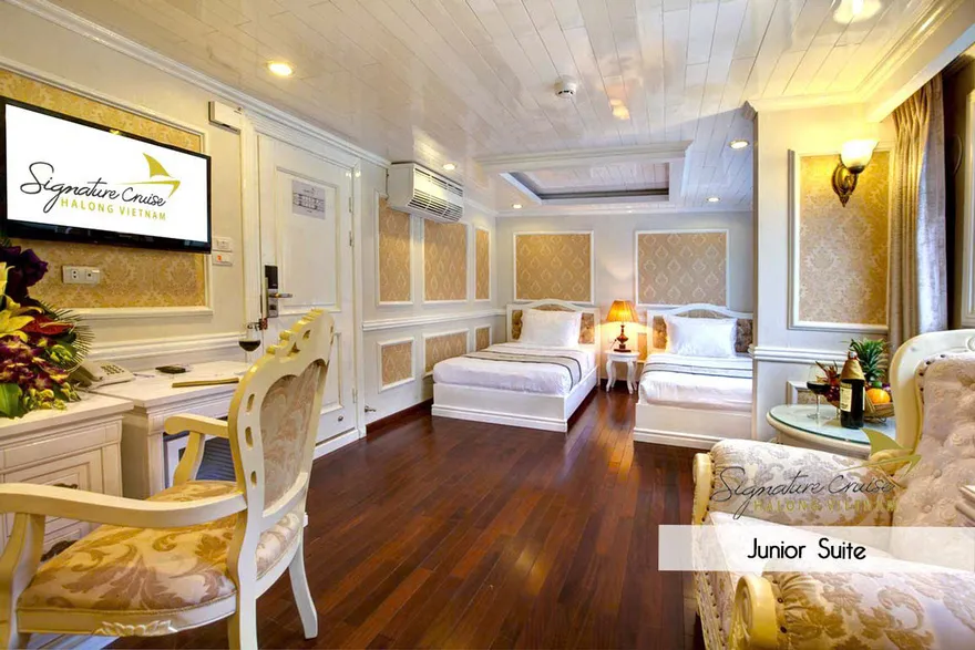 Giữa không gian tĩnh lặng của Vịnh Bái Tử Long, Signature Ha Long Cruise hiện lên như một kiệt tác tiên phong của tập đoàn Group, thiết lập một chuẩn mực hoàn toàn mới cho dòng du thuyền nghỉ đêm hạng sang. Được coi là “dấu ấn đầu tiên” trong hệ sinh thái, Signature Ha Long Cruise (Signature I) chính thức đi vào hoạt động từ năm 2013, khéo léo kết hợp giữa vẻ đẹp cổ điển của những con tàu gỗ truyền thống và sự kiên cố, an toàn của kiến trúc hàng hải hiện đại với cấu trúc vỏ gỗ lõi thép đặc trưng. Với triết lý dịch vụ mang tính cá nhân hóa cao, du thuyền không chỉ là phương tiện vận chuyển mà còn là một resort nổi đích thực, nơi mỗi chi tiết nhỏ nhất đều được chăm chút để mang lại sự thư thái tuyệt đối cho du khách giữa lòng kỳ quan di sản.