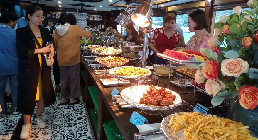 Quý khách thưởng thức bữa trưa buffet cao cấp với thực đơn hải sản tươi ngon, đặc sản của Quảng Ninh, cùng những món ăn truyền thống Việt Nam được chế biến tinh tế.