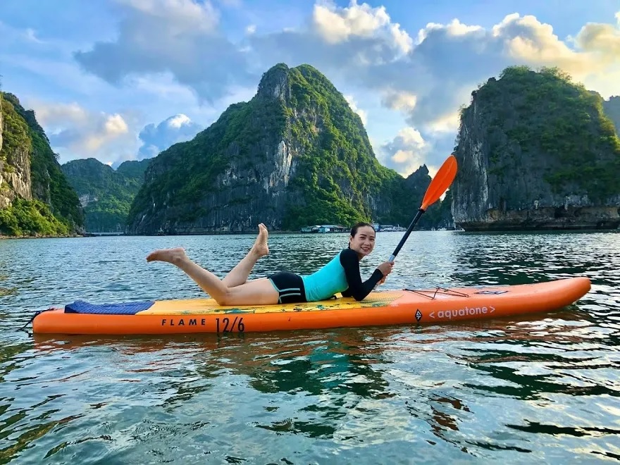 Tham gia hoạt động chèo thuyến Kayak là một trải nghiệm thu vị trong hành trình tour