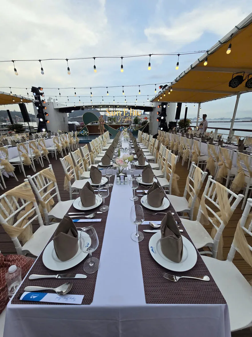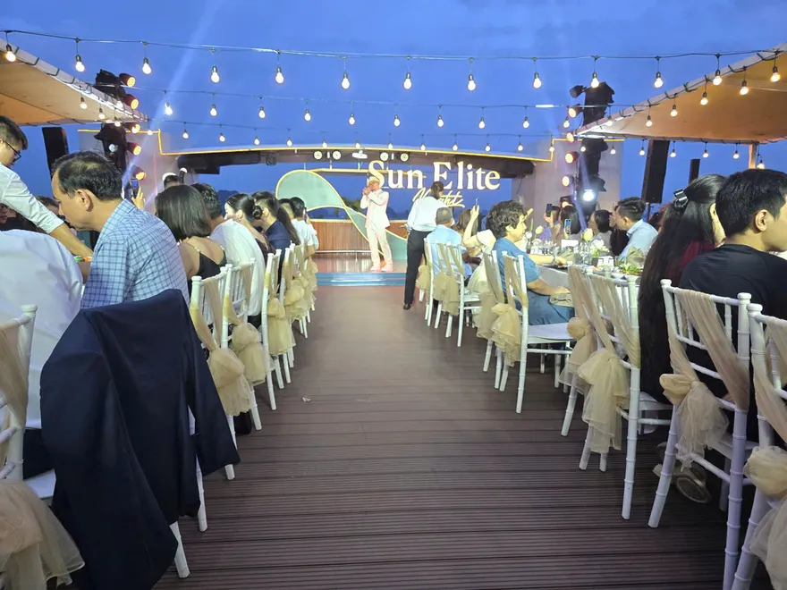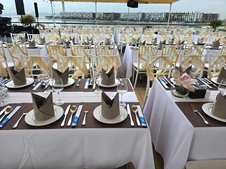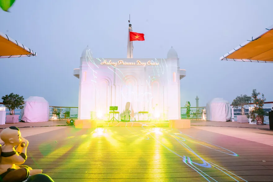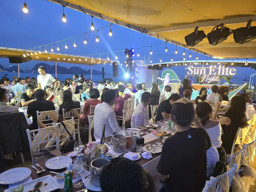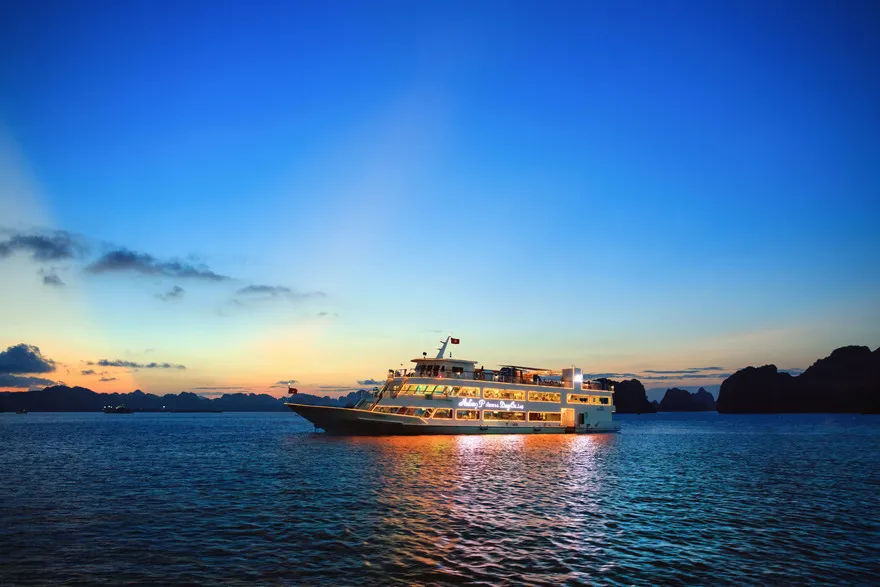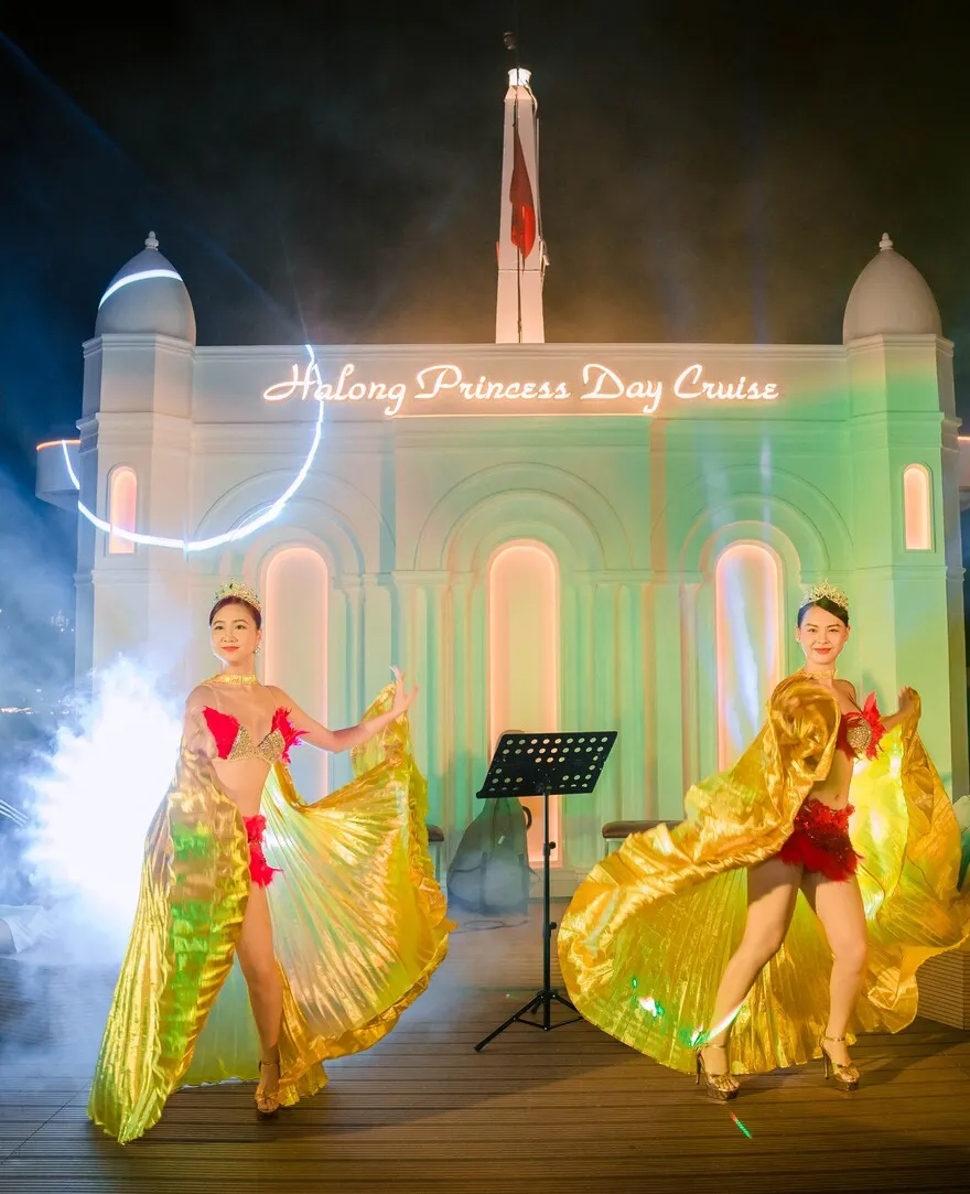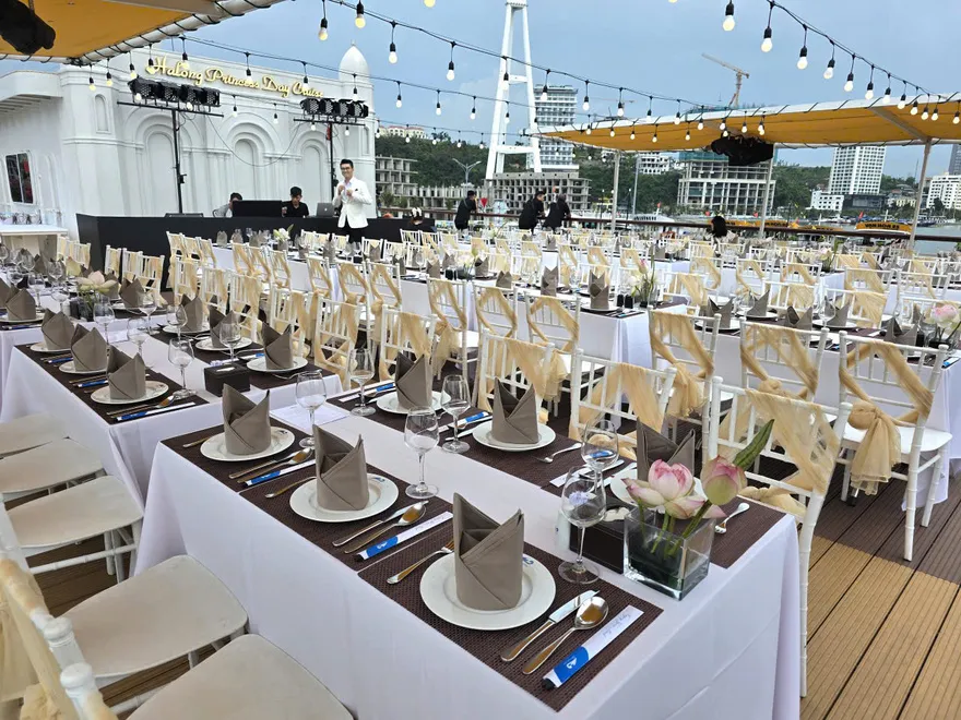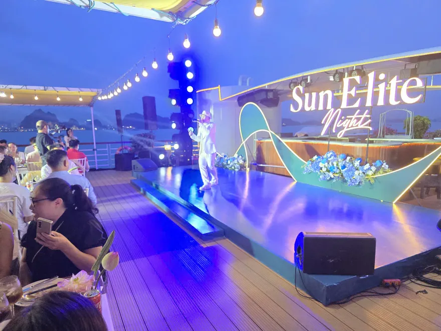 Hải trình “Ăn tối trên miền Di sản” của Princess Day Cruise mở ra một không gian đầy mê hoặc, nơi du khách có thể tận hưởng vẻ đẹp huyền ảo của phố biển Hạ Long khi màn đêm buông xuống. Đây không chỉ đơn thuần là một bữa tối, mà là một cuộc dạo chơi của cảm xúc, nơi ánh sáng, âm nhạc và ẩm thực hòa quyện để tạo nên những ký ức khó quên giữa lòng kỳ quan.