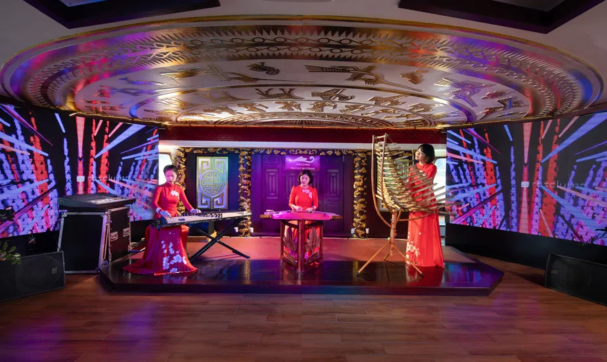 Điểm nhấn mang tính nghệ thuật sâu sắc nhất của hải trình chính là chương trình “Thanh Âm Di Sản”. Những âm thanh trong trẻo, sâu lắng từ các nhạc cụ dân tộc như đàn Bầu, đàn Tranh và đàn T’rưng vang lên giữa không gian biển đêm huyền bí, khơi gợi lòng tự hào dân tộc và nuôi dưỡng những giá trị truyền thống bền vững. Sự kết hợp giữa các giai điệu cổ truyền và phong cách biểu diễn chuyên nghiệp của ban nhạc quốc tế không chỉ là một bữa tiệc âm thanh đa sắc màu, mà còn là một liệu pháp tinh thần giúp chuyển hóa tâm – thân – trí của mỗi người tham gia.
